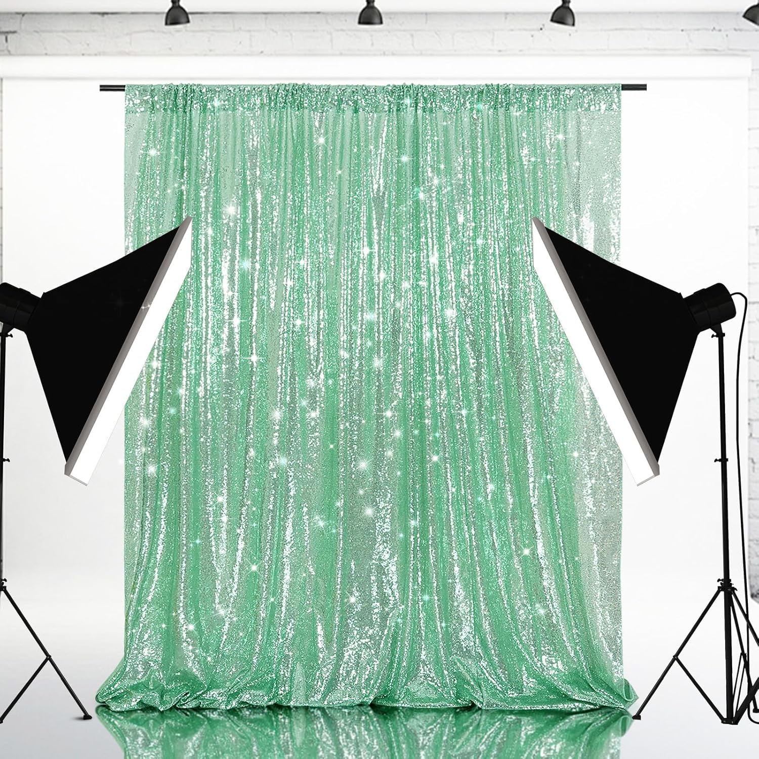Eternal Beauty Mint Green Sequin Backdrop, 8x10 Ft Glitter Background Curtains for Shimmer Photography Party Wedding Birthday Back Drop Decor