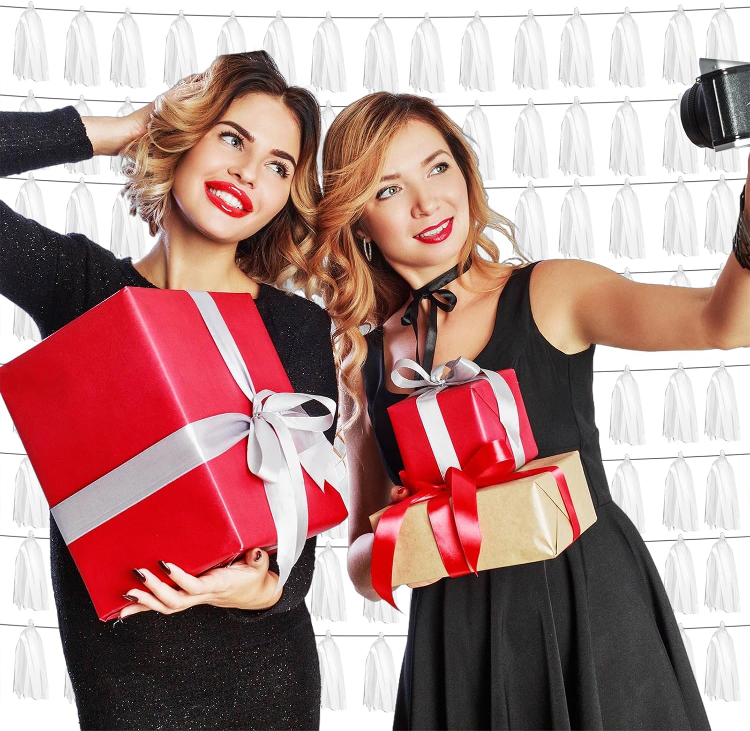 8P White Foil Fringe Metallic Tassel Streamers Banner Tassel Garland for Parade Floats, Graduation, Wedding, Birthday, Halloween, Christmas, Bridal/Baby Shower Party Decorations