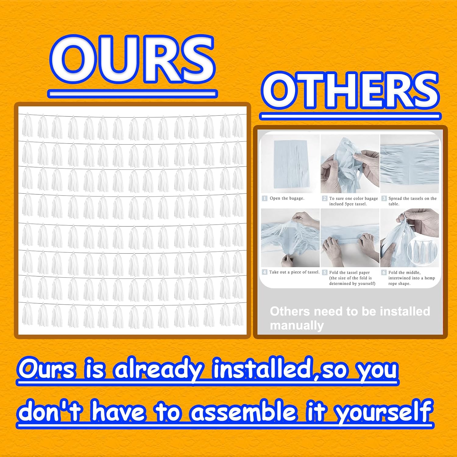 - 【White Beige Mint Gold Party Supplies Set】: The total length of the White beige mint gold birthday tassels banner is 78.7 feet, divided into 8 strips, each 9.8 feet long. Each banner contains 15 tassels, and each tassel measures 14 inches, for birthday decorations many occasions, and so on