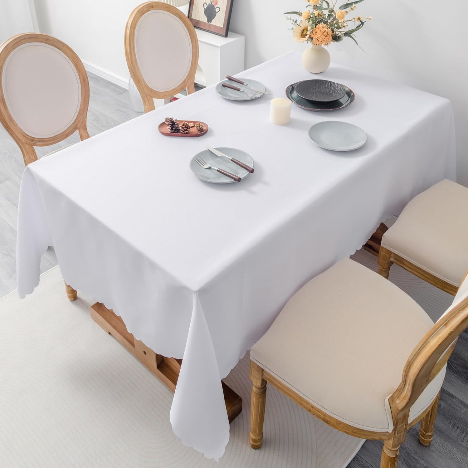 Rectangle White Tablecloth 60 x 84 Inch Polyester Fabric Washable Table Cloth Decorative Wrinkle Resistant Solid Color Table Cover for Dining Party Wedding Camping