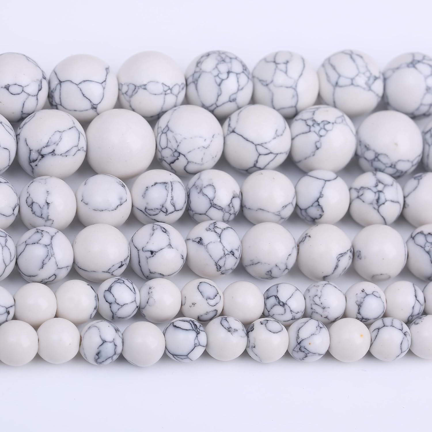 Natural White Turquoise Stone Beads Gemstone Round Crystal Energy Jade Beads Stone Beads for Jewelry Making DIY Bracelet Necklace Jewelry Making 1 Strand 15.5inch 35PCS 10MM