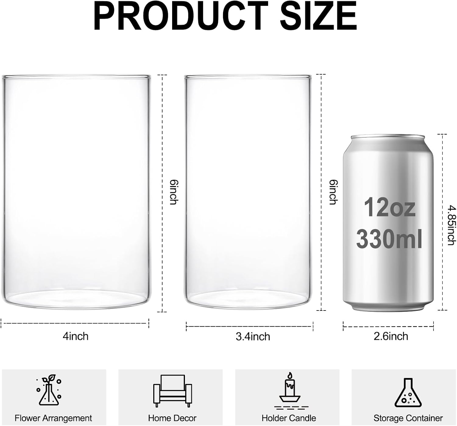- PRODUCT SIZE: The height of our perfect flower vases is about 6 inch and the diameter is about 3.4 and 4 inch. Cylindrical vases come in different sizes offering more possibilities for your decoration. Note: please check the size image for more reference.
