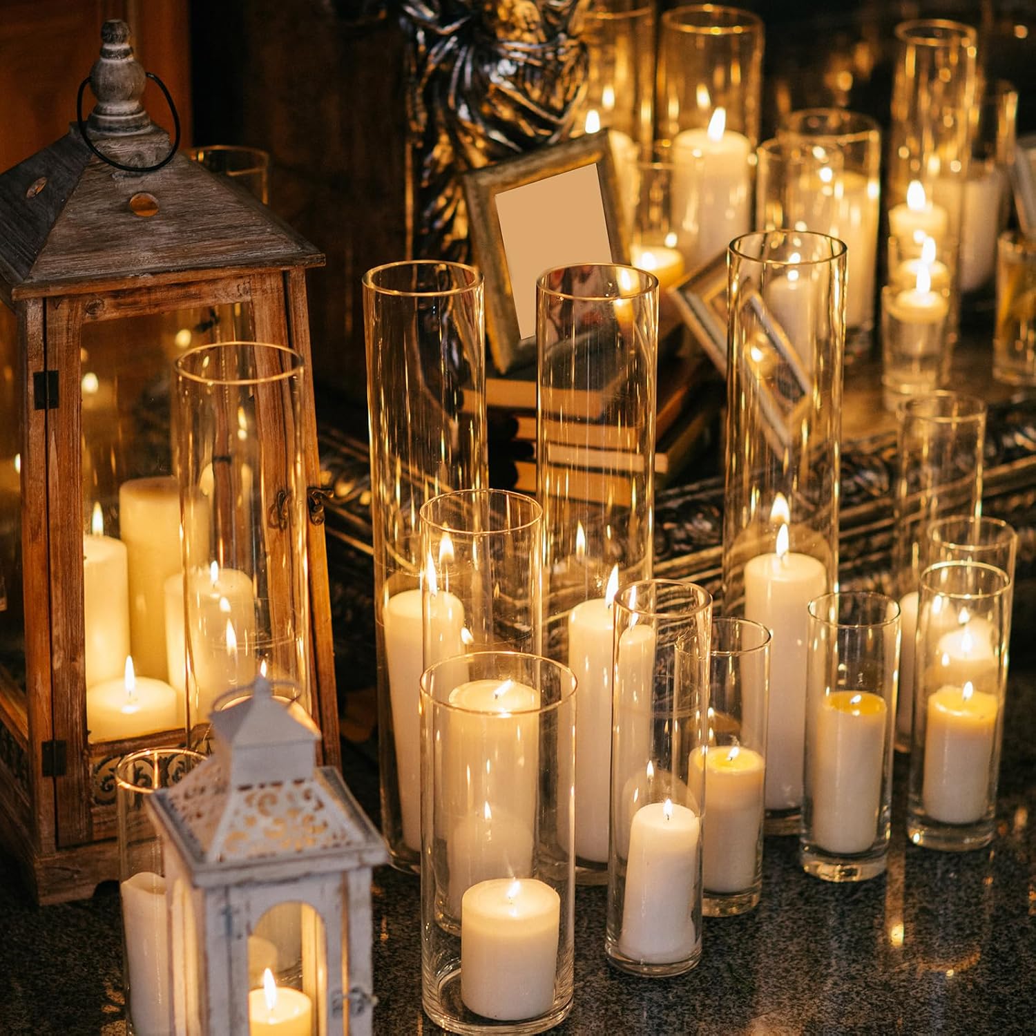 Fixwal 18pcs Tall Cylinder Vases for Centerpieces 4, 8, 12 Inch Clear Glass Flower Vase Floating Candle Holder for Table Shelf, Party, Wedding, Home Decor
