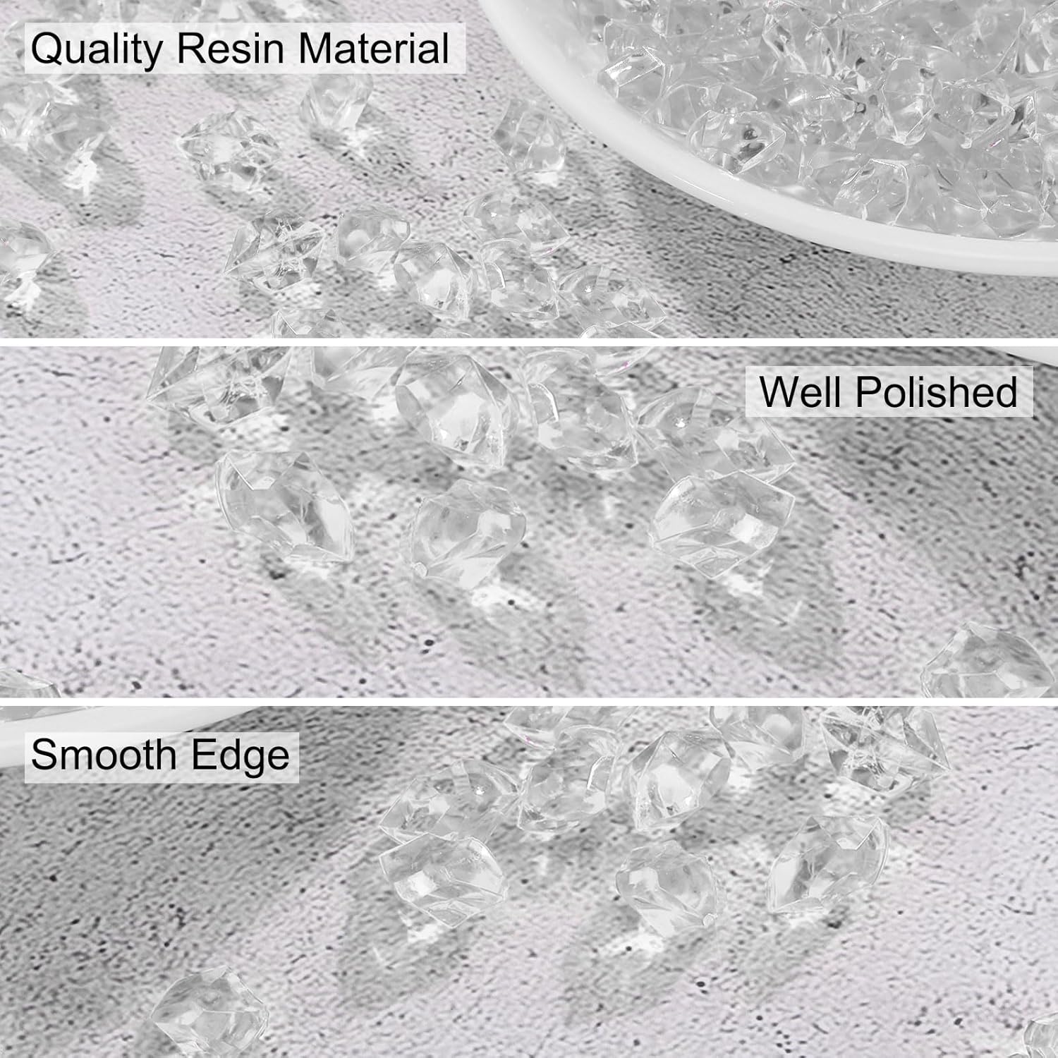 - Material - These fake ice rocks are made of dazzling clear resin, designed to resemble crushed ice and sparkling fake diamonds, adding a touch of glamour and elegance to decorations.