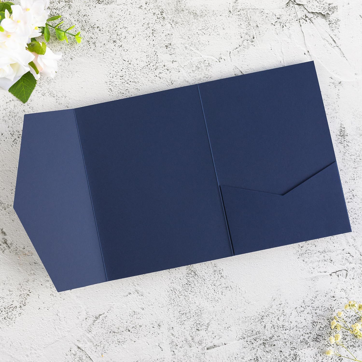 - HIGH QUALITY -- The navy blue tri-fold invitation pockect is made from 250 gsm thick paper, Very good quality and heavy, not easily deformed, Look simple and elegant