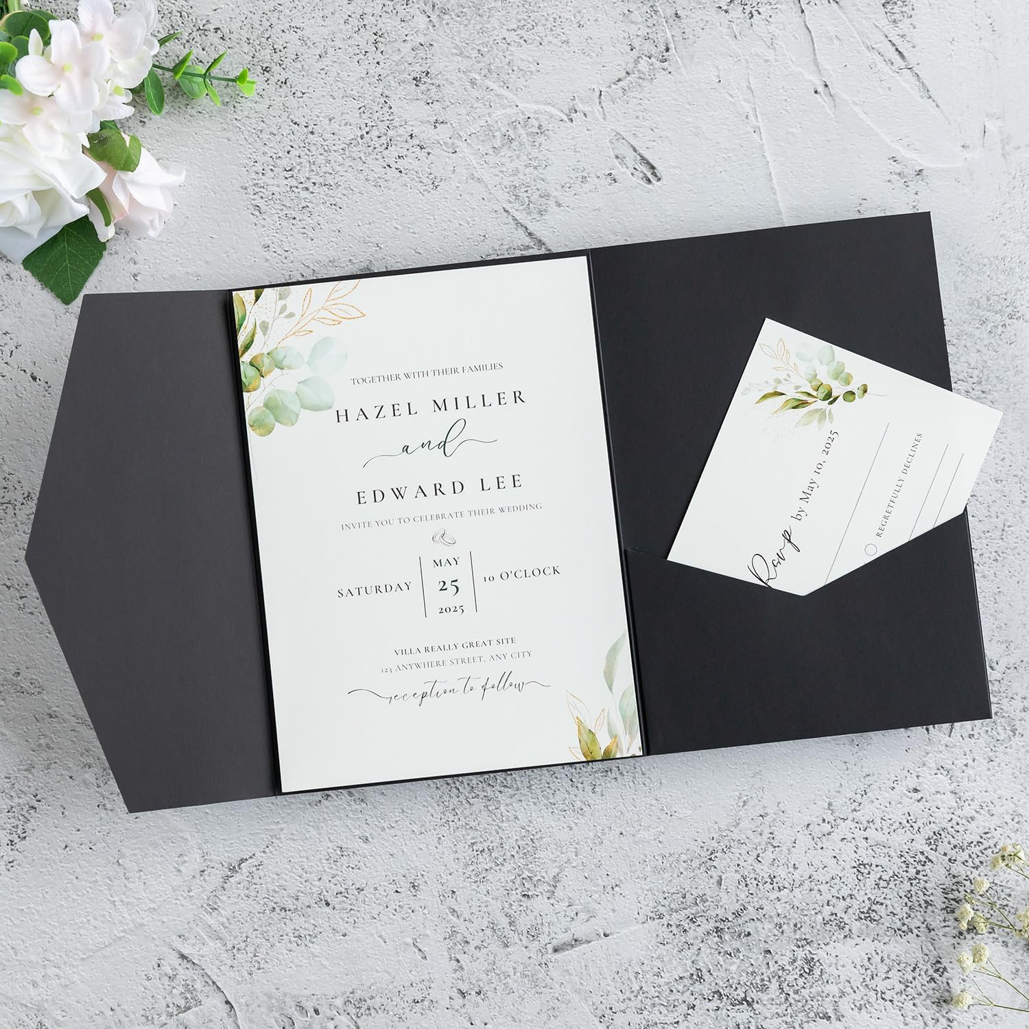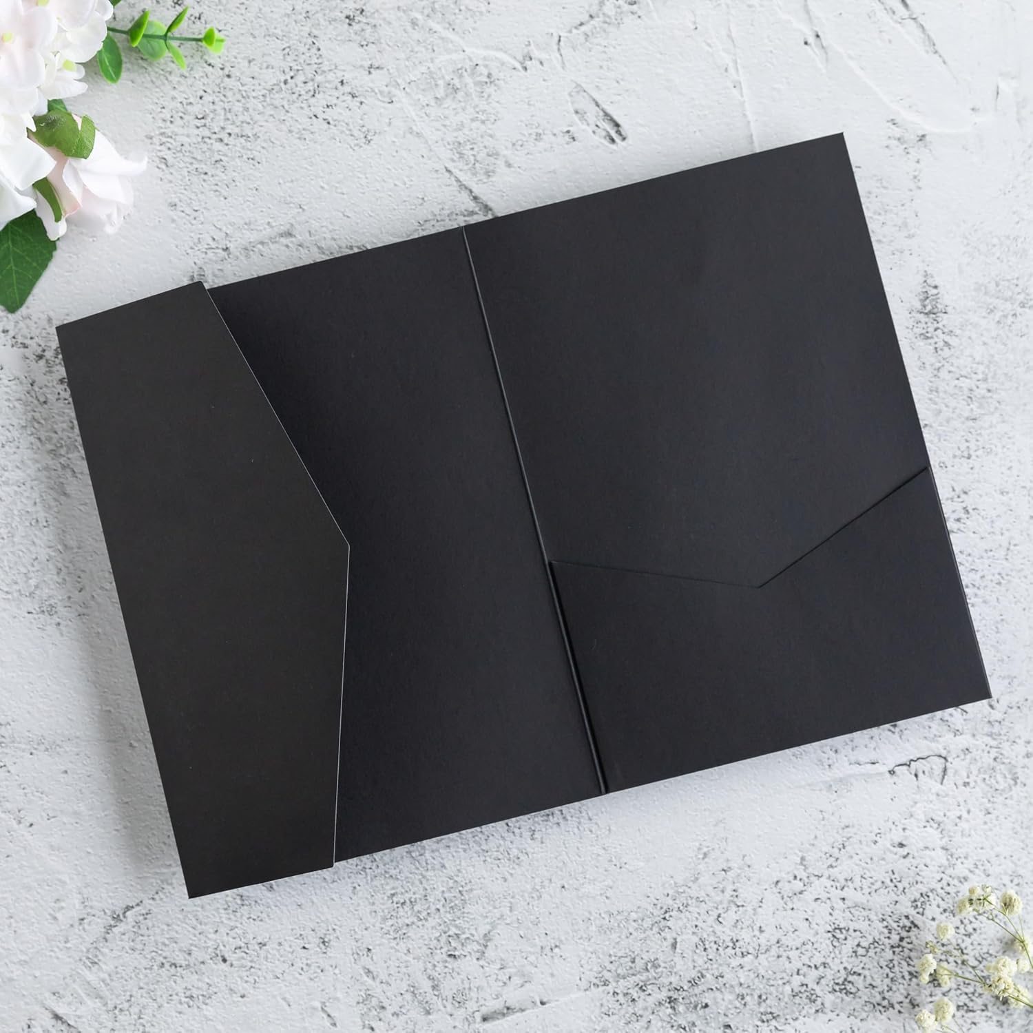 - HIGH QUALITY -- The black tri-fold invitation pockect is made from 250 gsm thick paper, Very good quality and heavy, not easily deformed, Look simple and elegant