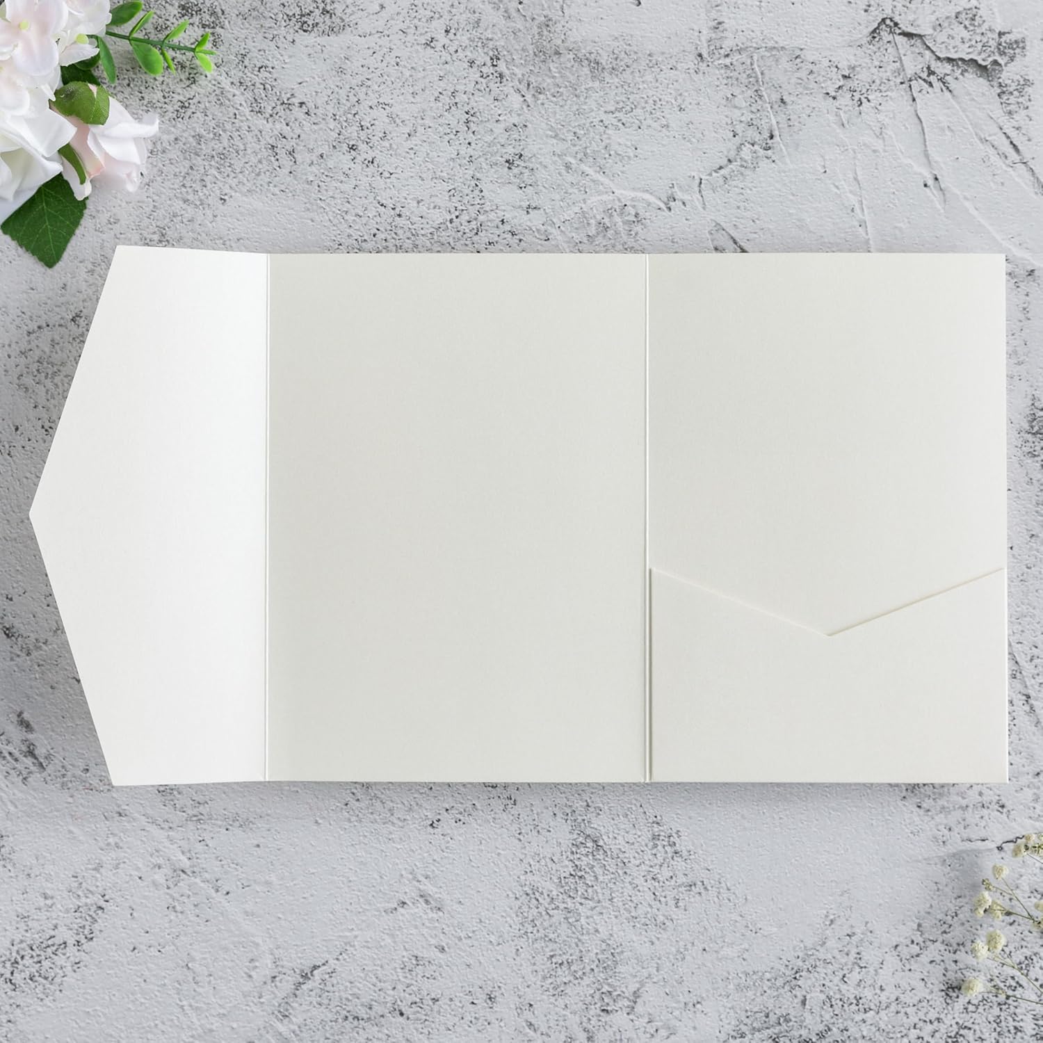 20 PCS Ivory Tri-fold Laser Cut Wedding Invitation Pockets for 5x7 Wedding Cards Bridal Shower Engagement Quinceanera Invitation