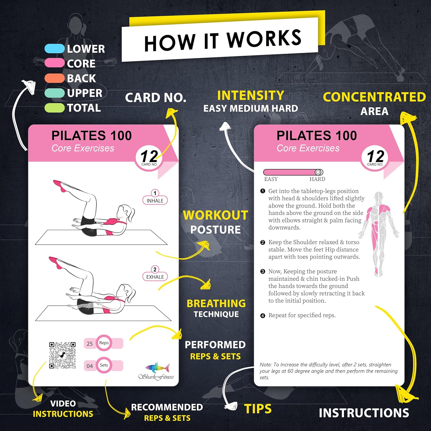 - CERTIFIED PILATES SUPPORT - Every Pilates card features a QR code that connects you to video demonstrations by a certified Pilates instructor, ensuring correct form, maximizing workout benefits, and minimizing potential strain.