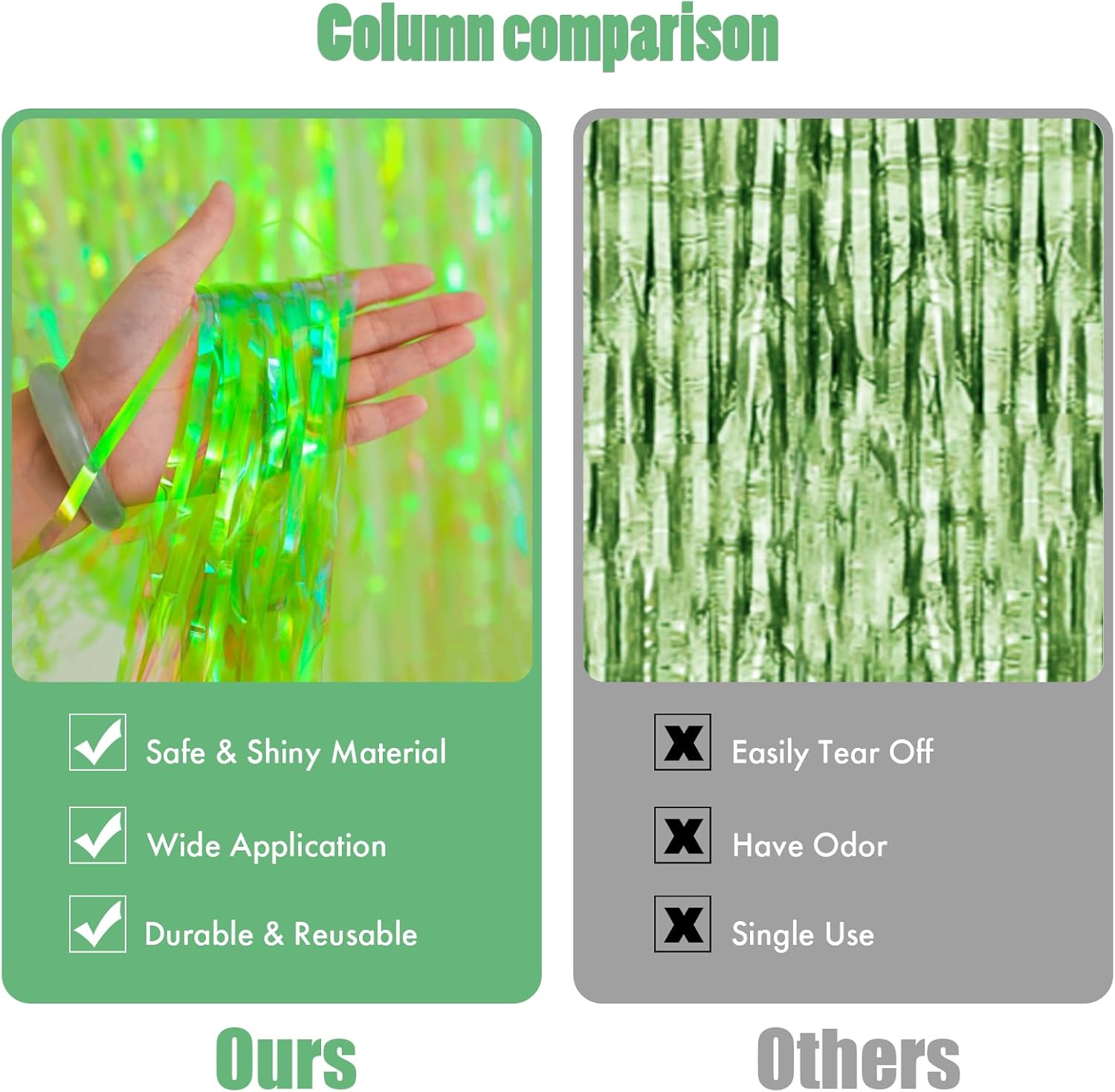 - PREMIUM MATERIAL- This clear green tinsel backdrop is made of high-quality shiny tinsel, non-toxic, odorless, and non-fading, safe for families with children and pets. Just transform your home into a shining streamers happy birthday decorations, and enjoy the party.