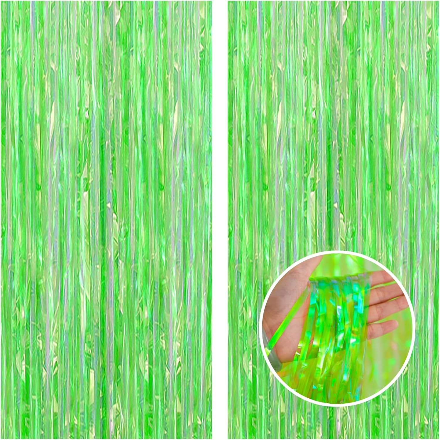 - PACKAGE INCLUDED : 2 pack of clear green foil fringe curtains, the size of each tinsel curtain is 3.2 ft x 6.5 ft, enough length for hanging on a door or covering a wall fully, suitable for any parties.