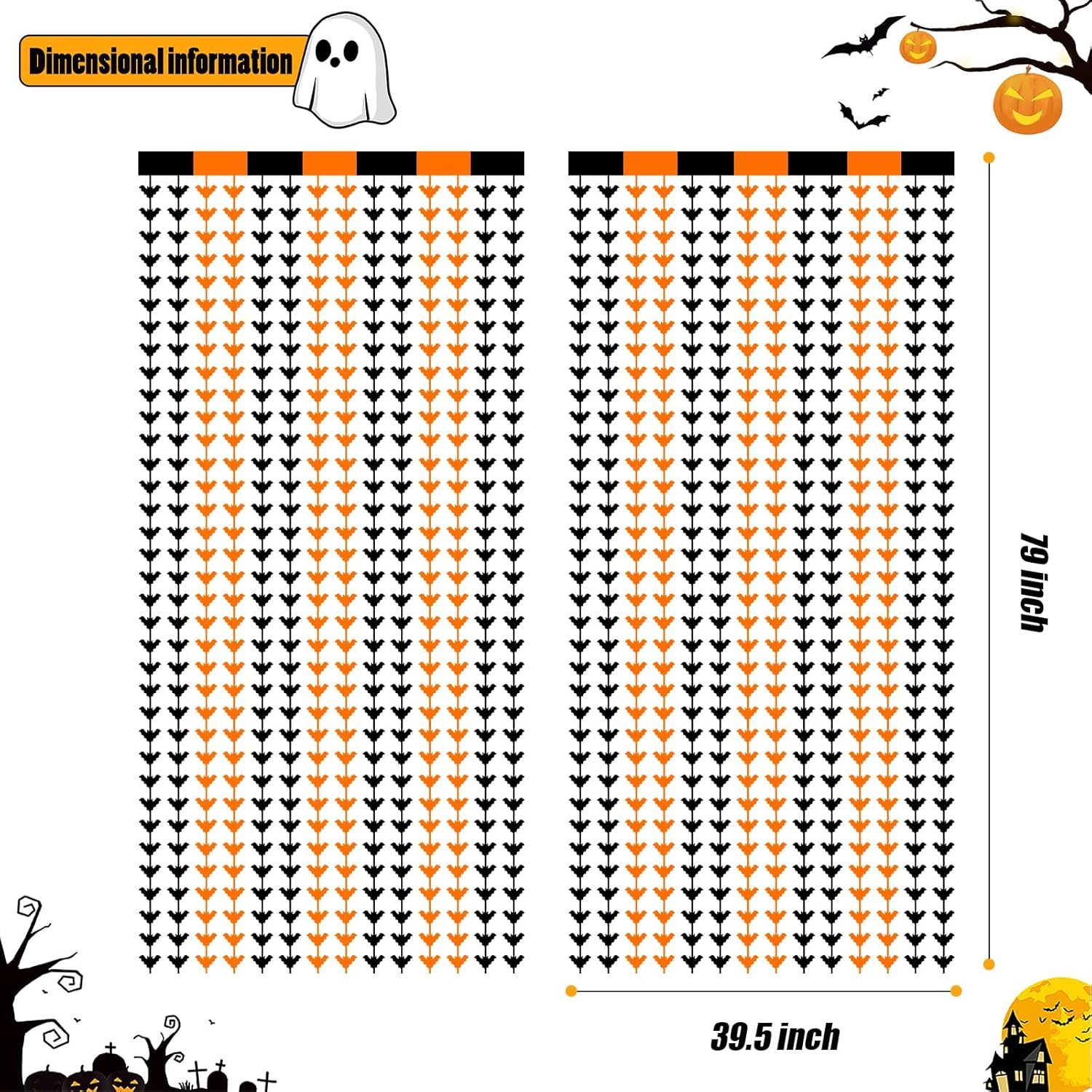 - PACKAGE INCLUDED : 2 pack of black and orange bat foil fringe curtains, the size of each tinsel curtain is 3.2 ft x 6.5 ft, enough length for hanging on a door or covering a wall fully, suitable for any parties.