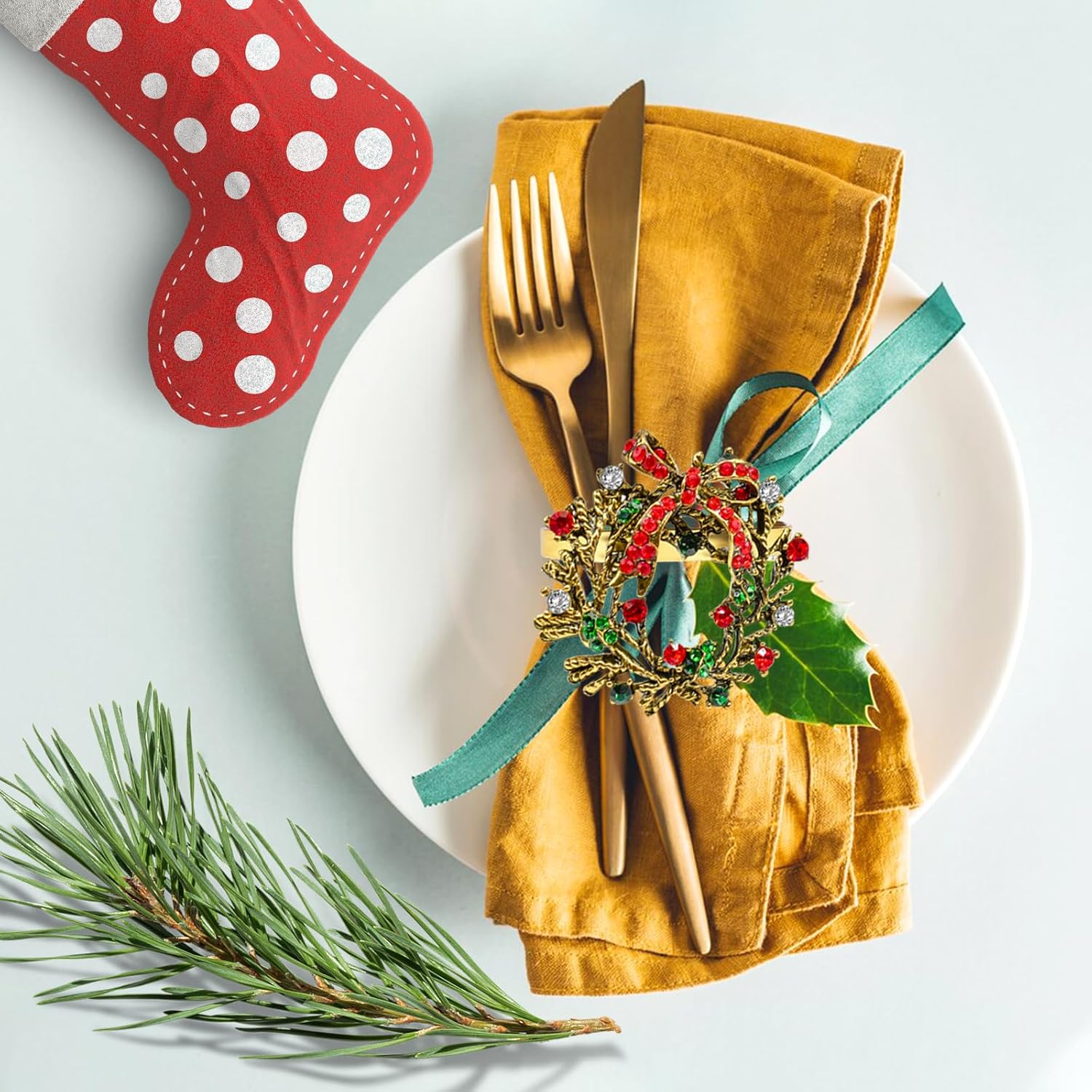 - Sturdy Material & Beautiful Design: These adorable Xmas napkin rings are made of metal which are sturdy and durable. Sparkling red, white, and green rhinestones are set in metal branches surrounding a bow encrusted with red rhinestones. They shine in the light and add an elegant splash of color to your table.