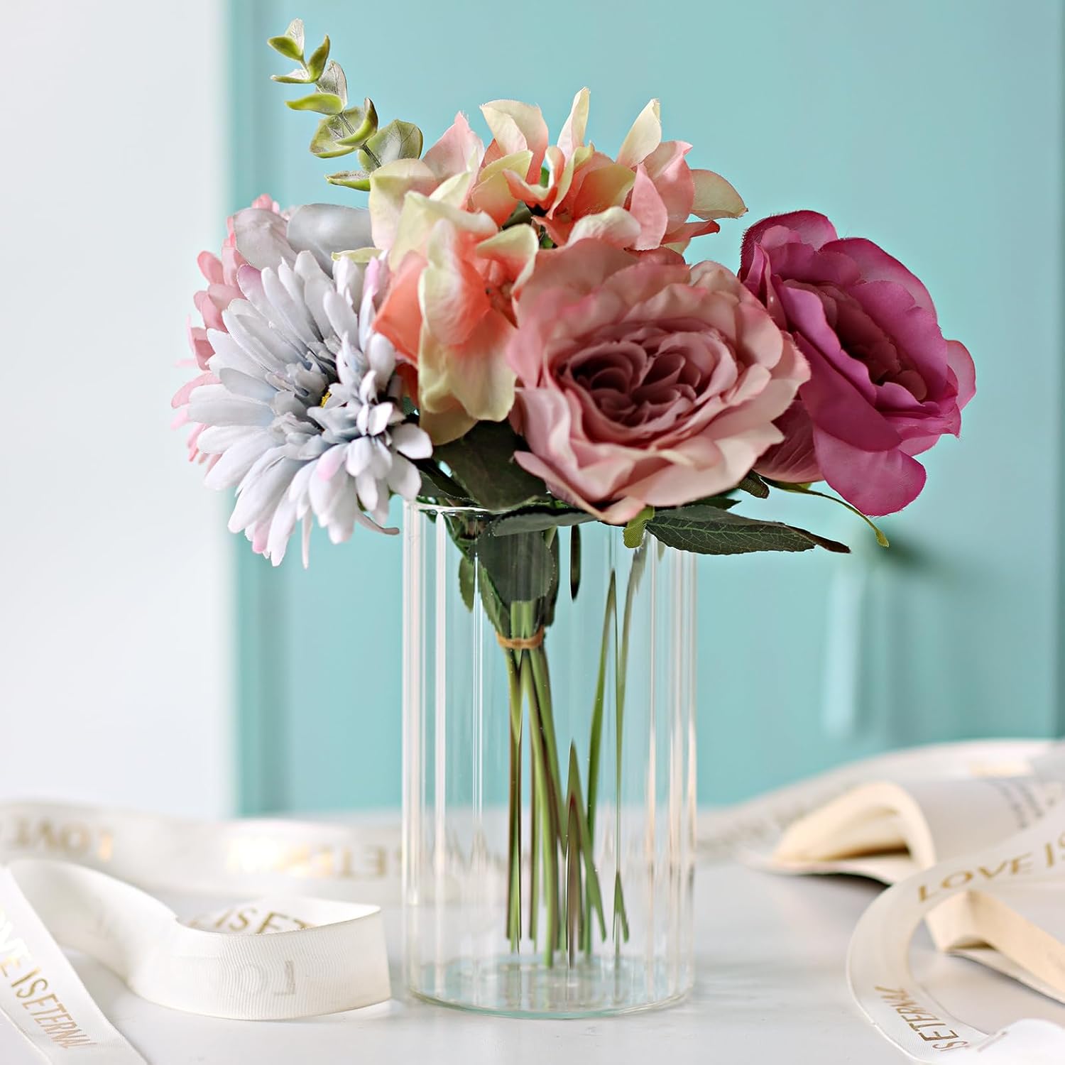 - 【High Quality Material】Made from high-quality glass, safe with dishwasher and hot water. Our clear glass cylinder vases set are sturdy, simple, elegant and modern.The ribbed pattern of these flower vases adds a unique and elegant touch to any space.