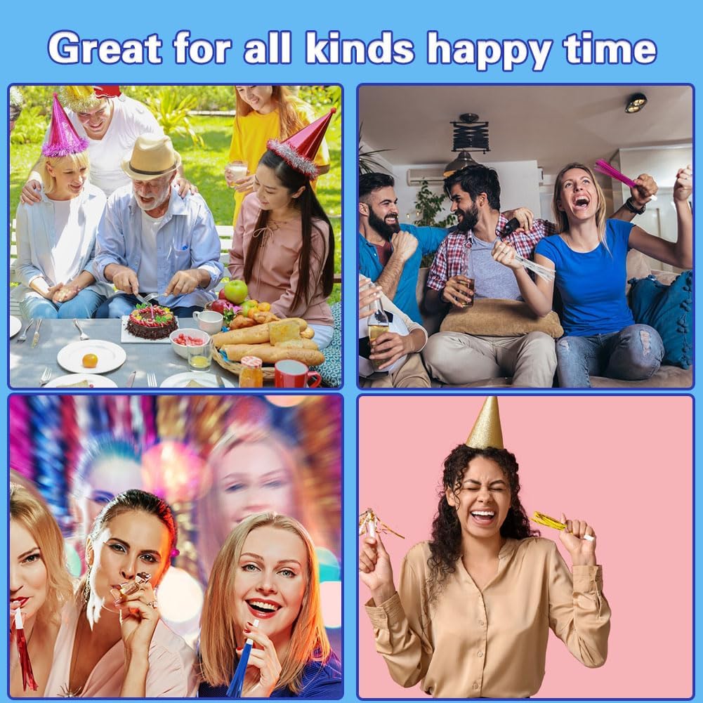 Lovecheer 24/60PCS Glitter Noise Makers Metallic Fringed Party Blowers for Adults Birthday Wedding Graduation 2025 New Years Musical Blowouts