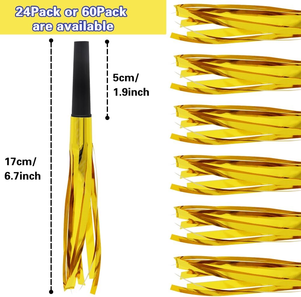 Lovecheer 24/60PCS Glitter Noise Makers Metallic Fringed Party Blowers for Adults Birthday Wedding Graduation 2025 New Years Musical Blowouts