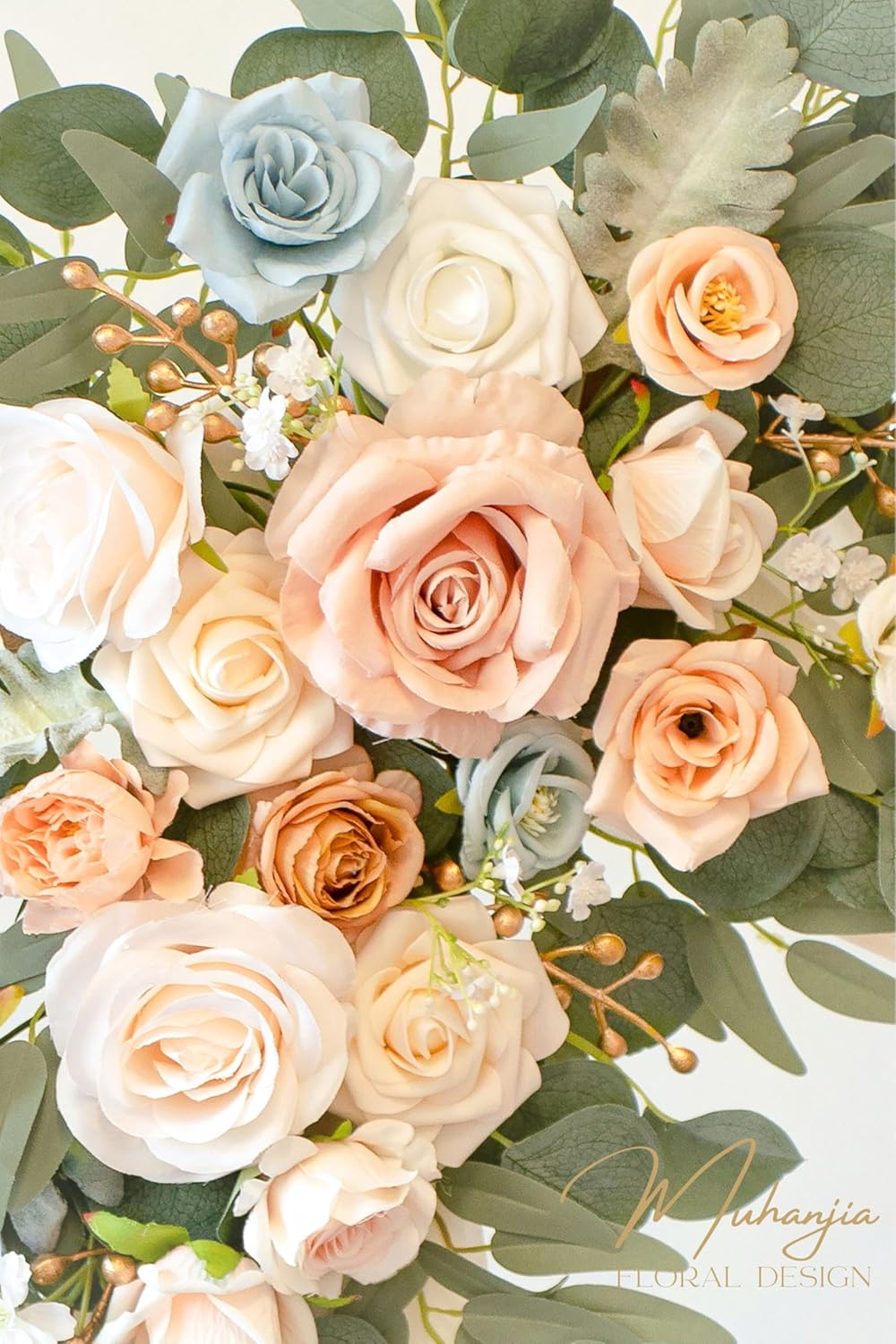 Artificial Wedding Arch Flowers Kit(Pack of 4),2Pcs Artificial Flower Arch Decor, 2Pcs Chiffon Fabric Drapes, Ceremony Decoration, Floral Outdoor Party Decor (Champagne & Blue)