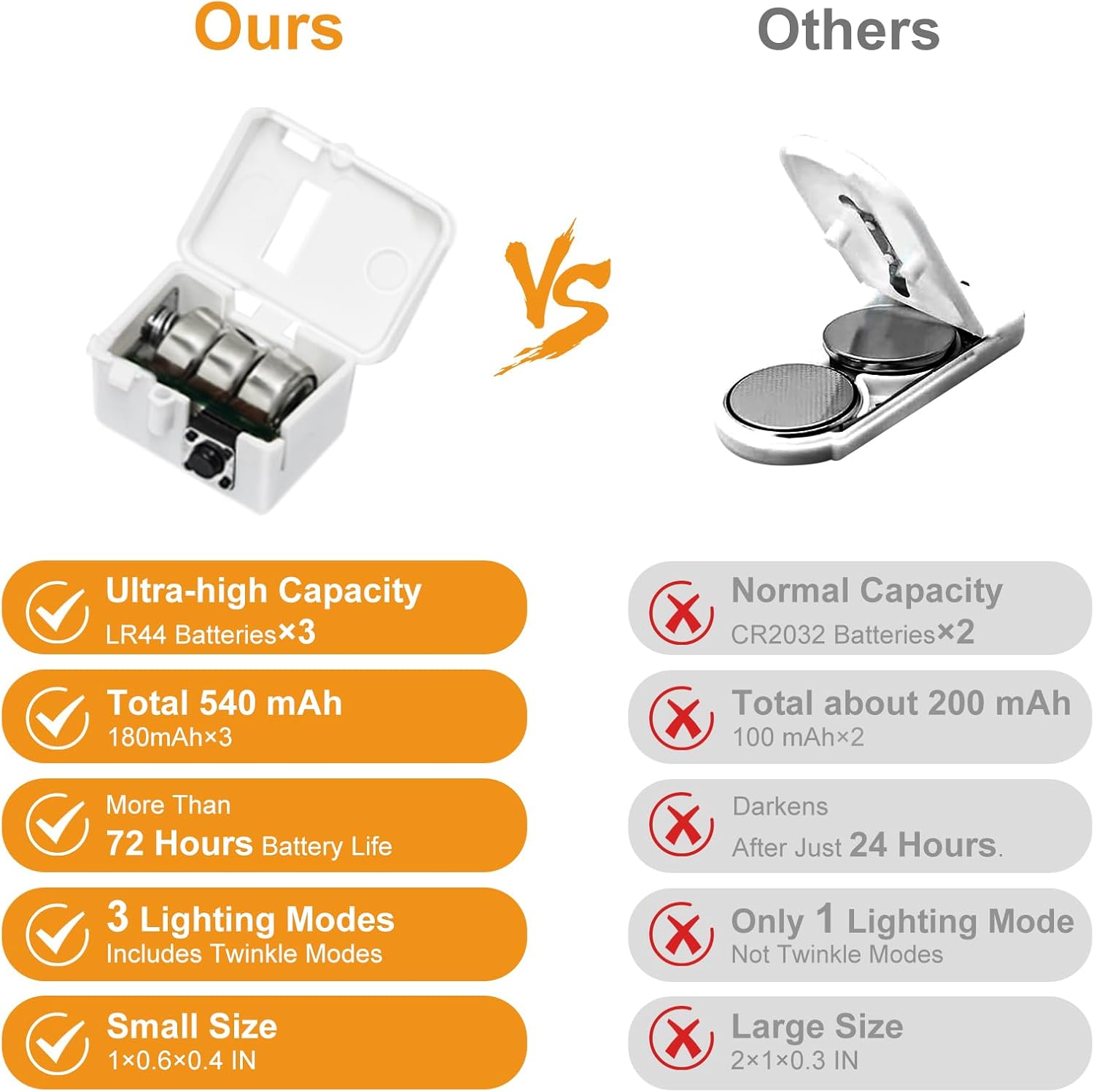 - 3 High-Capacity LR44 Batteries: Each fairy lights are equipped with 3 pre-installed 180 mAh batteries, no need to buy extra, providing up to lasting 72 hours lighting. Perfect for decorating mason jars, vases, crafts, bottles, plants, ornaments, garland, wreath and more
