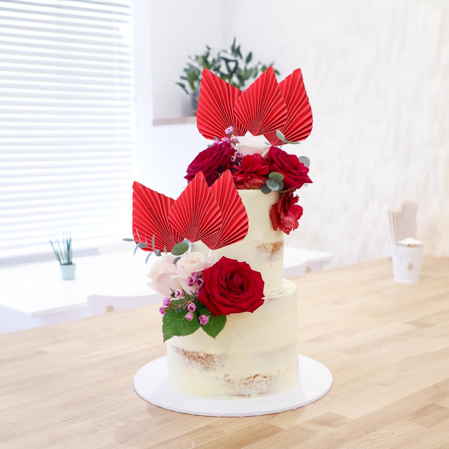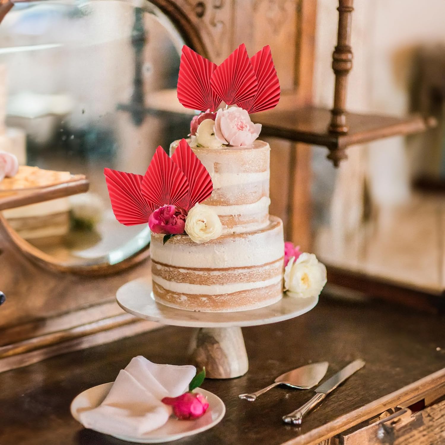 Ephlyn 6Pcs Paper Palm Fan Cake Topper Palm Leaf Fan Cake Pick Palm Spear Leaf DIY Cake Decorations for Bakeware Baby Shower Wedding Bridal Shower Birthday Anniversary Party Red