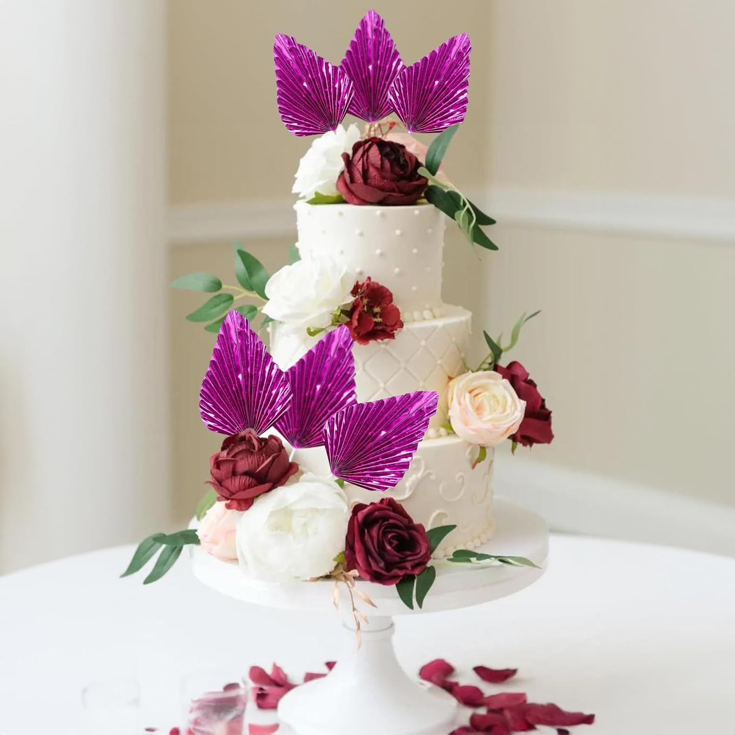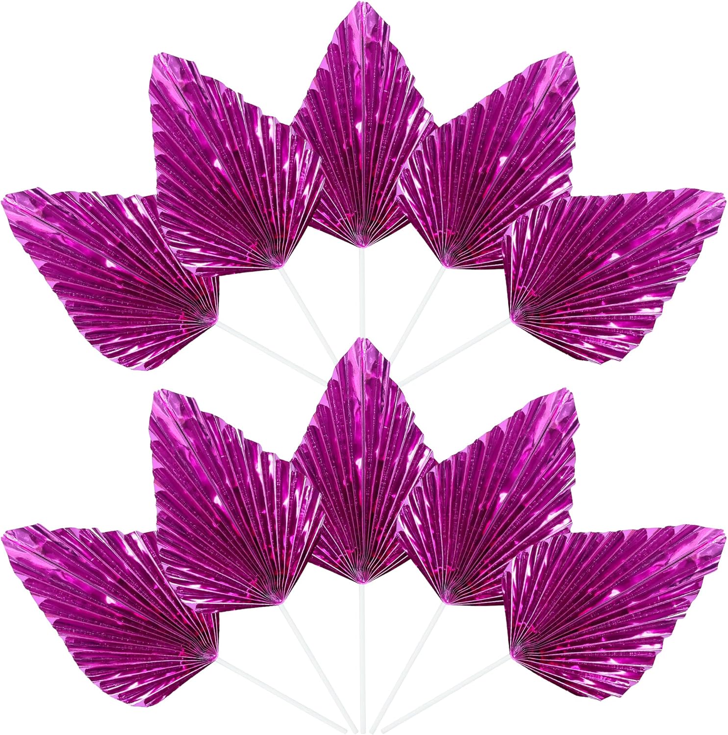 Ephlyn 6Pcs Paper Palm Leaves Fan Cake Toppers Palm Leaf Fan Cake Picks Craft DIY Fan Cupcake Toppers Palm Spear Leaves Cake Decorations for Baby Shower Wedding Birthday Party Supplies Bright Rose Red