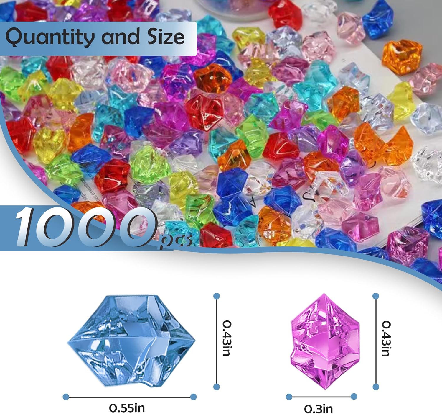 Fake Crushed Ice Cubes 1000pcs Multicolor Acrylic Crystal Rocks Multi Colored Fake Ice Rocks Acrylic Gems Stones for Easter Vase Fillers Mermaid Birthday Party Wedding Floral Arrangement Home Decor
