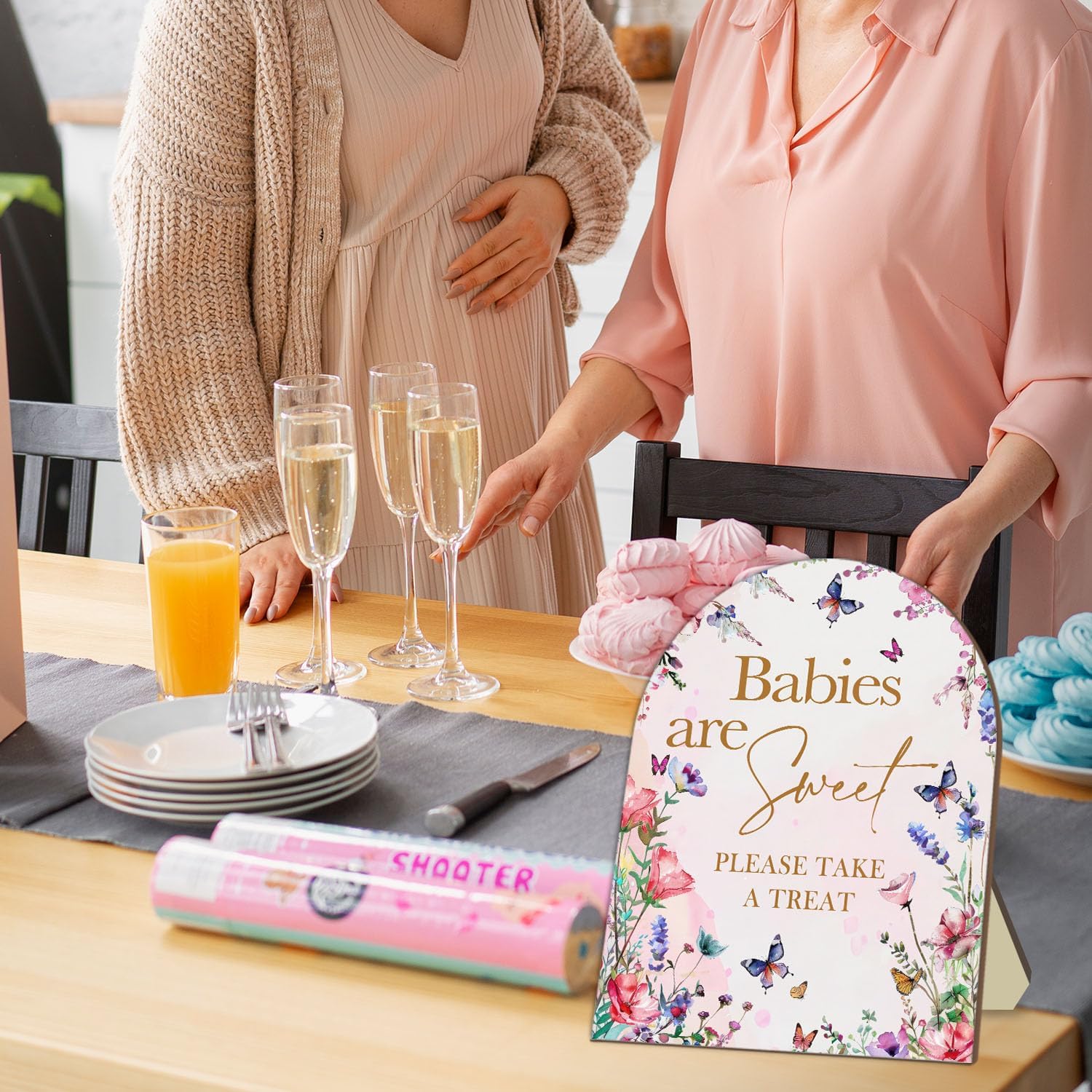 Sweet Babies Please Take A Treat Floral Butterfly Baby Shower Decoration Sign - Pink Welcome Sign 9 * 11IN