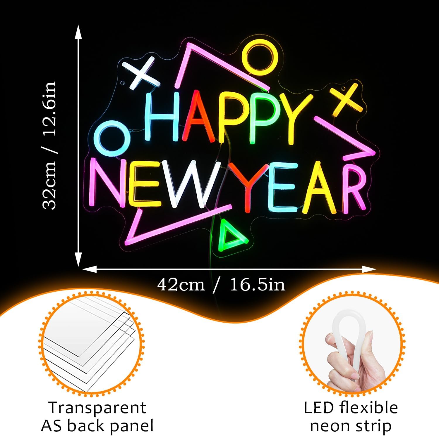 - Materials: The overall structure of the New Year neon sign is composed of acrylic backing and PVC material, which makes the neon light have a long service life and relatively lower maintenance costs compared to traditional lighting fixtures.