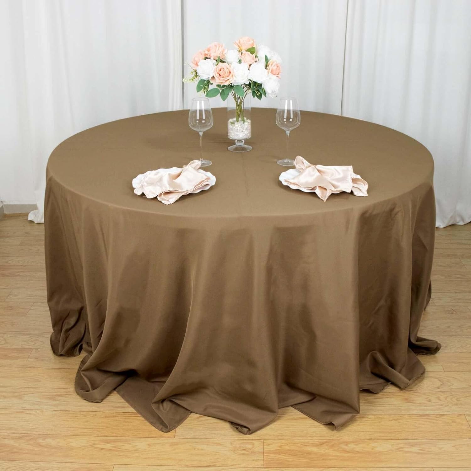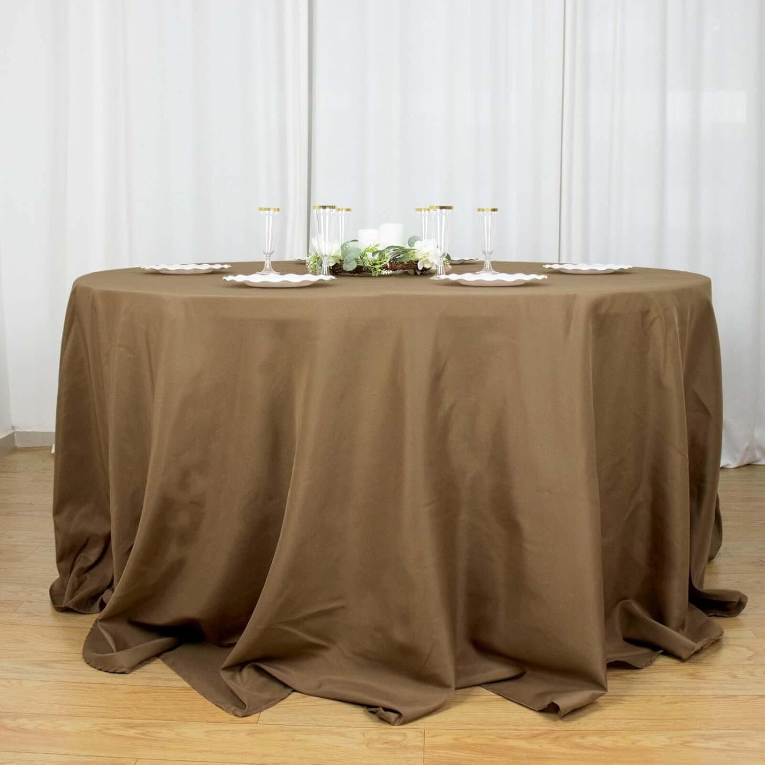 Efavormart Round Tablecloth, 132 Inch Stain & Wrinkle Resistant Washable Table Cloth, Decorative Polyester Fabric Table Cover for Banquet, Wedding, Dining- Taupe