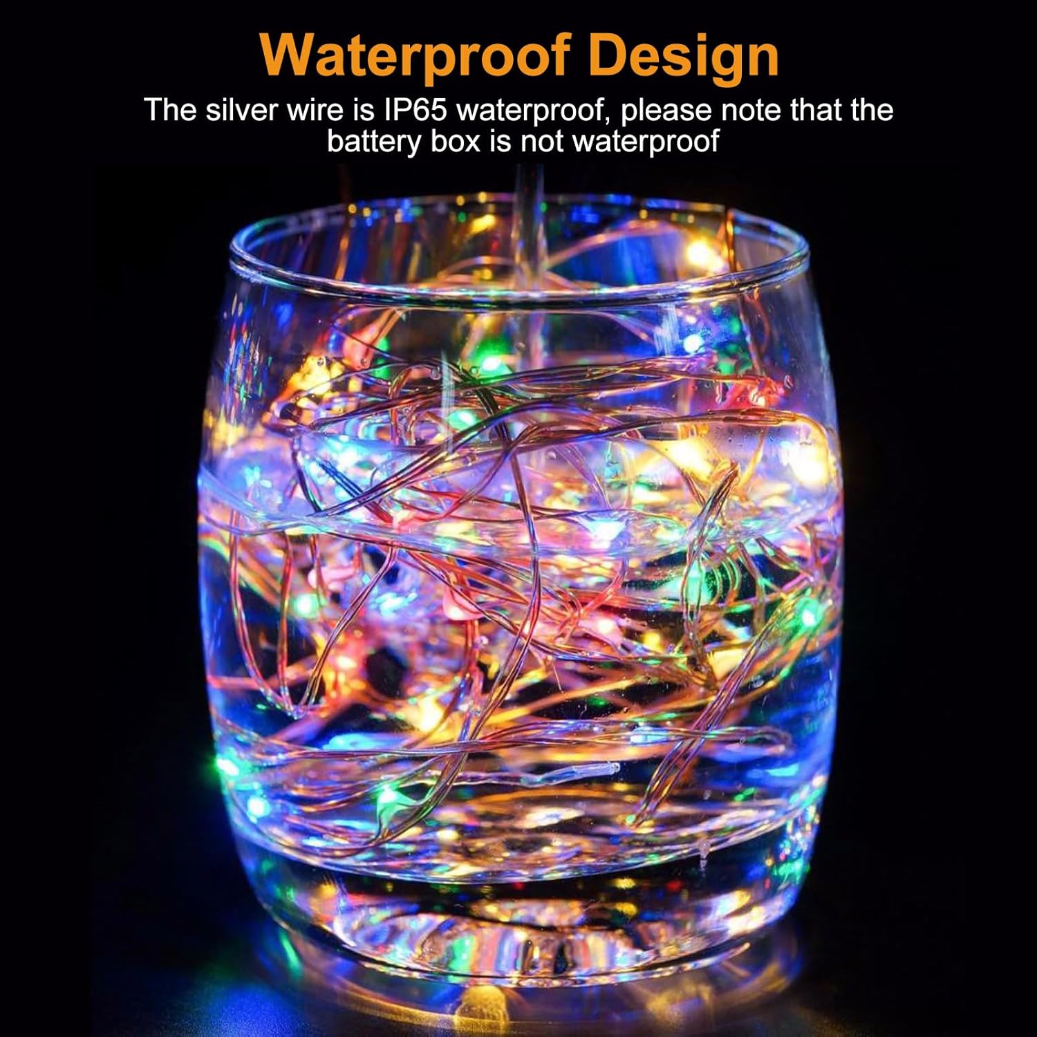 - IP65 Waterproof and Safe to Use: Light string supports IP65 waterproof, can be submersible in water (Battery box is not waterproof). Powered by a safe 1.5V low voltage, and will not heat or short-circuit even after a long use, safe of touch and use