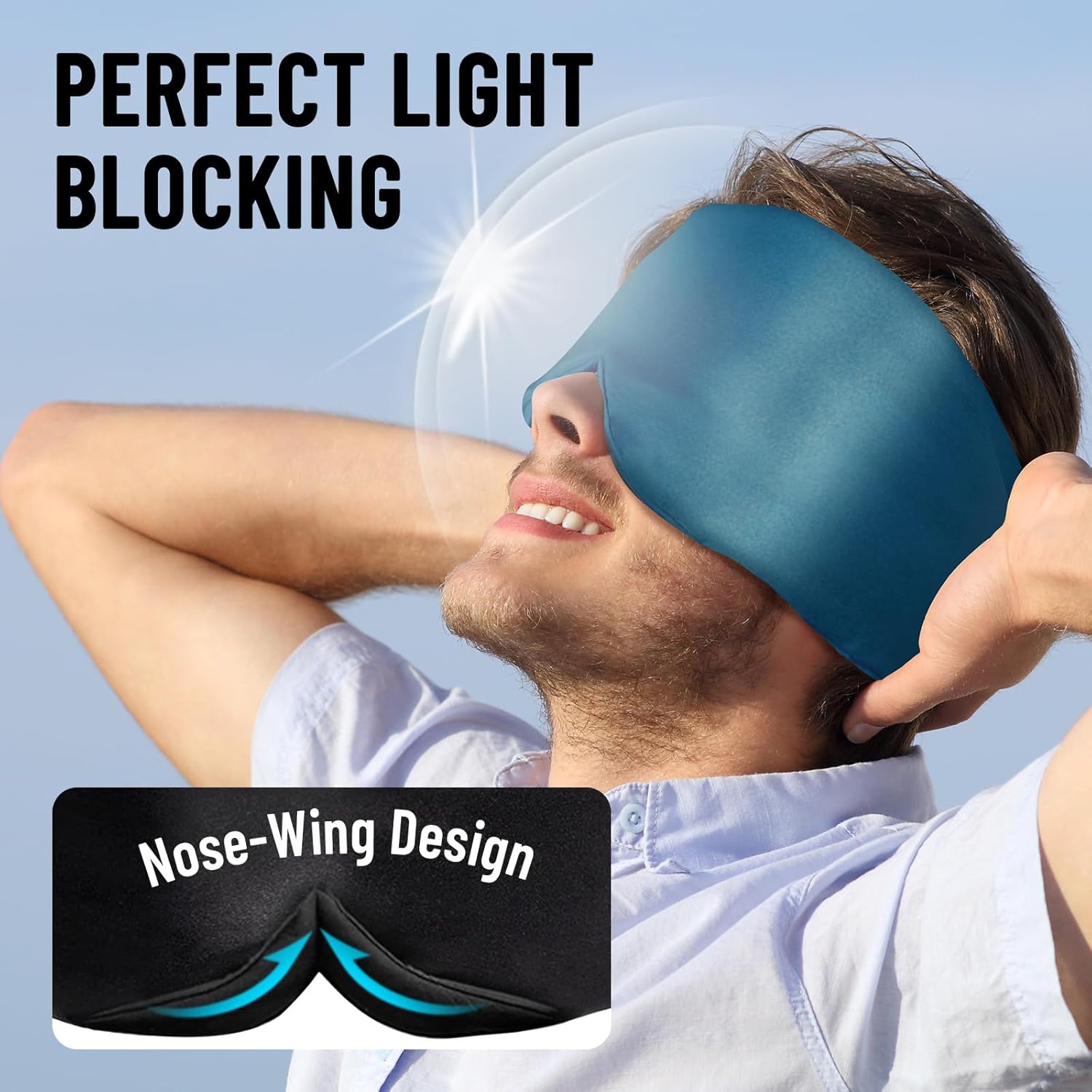100% Mulberry Silk Sleep Mask, Large Eye Cover for Sleeping, Comfortable and Pressure-Free Sleeping Masks for Women Men, Completely Blackout (Peacock Blue)