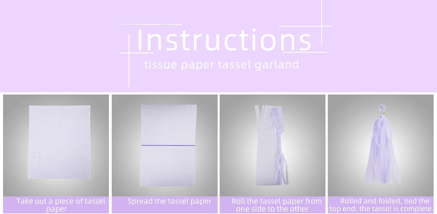 - 【Package Including】The decorations kit include 15pcs tissue paper tassel garland in 3 colors,white light purple,dark purple,each tassel is approx 13.8inches in length