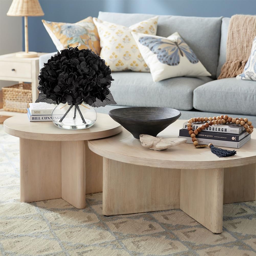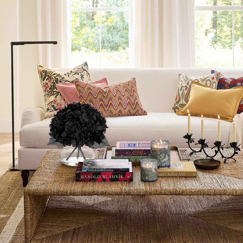 Hollyone Hydrangea Fall Flowers Artificial for Decoration with Glass Vase Black Silk Faux Flowers Arrangements in Vase with Faux Water Fake Floral Bouquet Table Centerpiece Halloween Home Decor