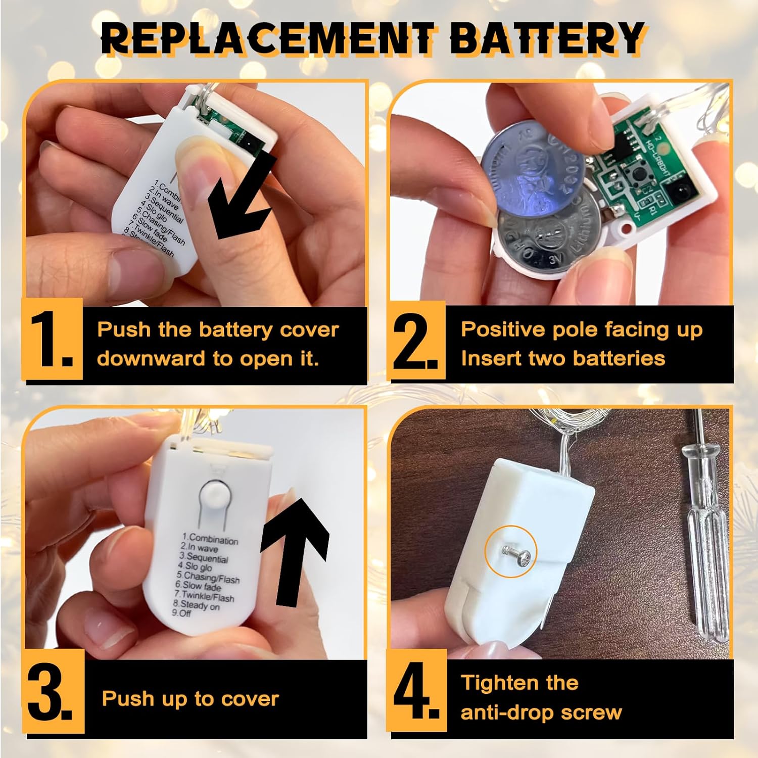 - 【Battery Powered & Remote Control】: Say goodbye to manual switches! Effortlessly control your lights with the included remote, adjusting settings from a distance for maximum convenience. Each light set is powered by 2 CR2032 batteries (included and replaceable).