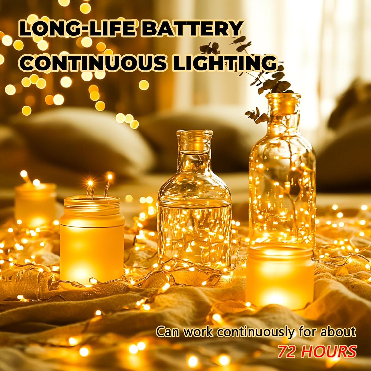 - 【8 Lighting Modes】: Choose from 8 different lighting effects to match the mood of your space or event. Perfect for decorating your garden, Mason Jars, wedding, balcony, corridor, fence, shelf, bistro, pub, cafe, flower shop, patio, party, Halloween, Christmas tree, Thanksgiving, etc. anywhere indoor or outdoor usage of lighting decorations and projects.