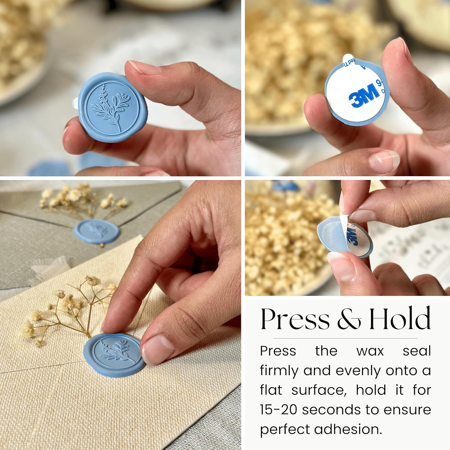 - Strong & Reliable Adhesiveness: The premium adhesive of our wax stamp stickers ensures Christmas cards and wedding invites stay securely sealed. Perfect wedding stickers for scrapbooking and various surfaces like paper, glass, or wood. Easy peel-off tab for worry-free, lasting application.