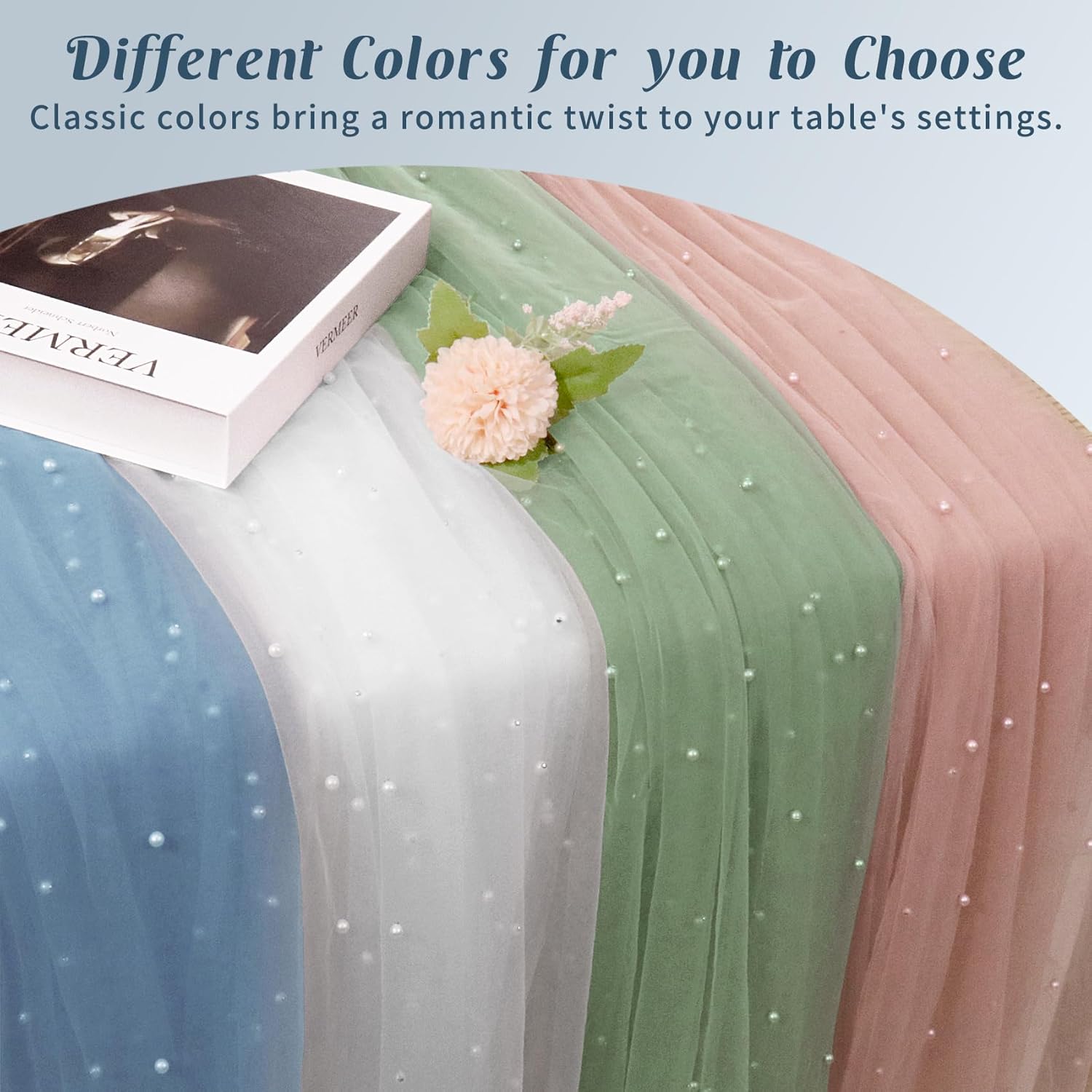 - 【Package Include】 You will receive 6 pieces of 29 x 120 inches pearl tulle table runners, the quantity is sufficient for your daily use and replacement needs, it's long enough to fit different size tables and chairs, These tulle table runner with pearls are skin-friendly. There are lots of different colors for you to choose. Perfect to decorate your tables.