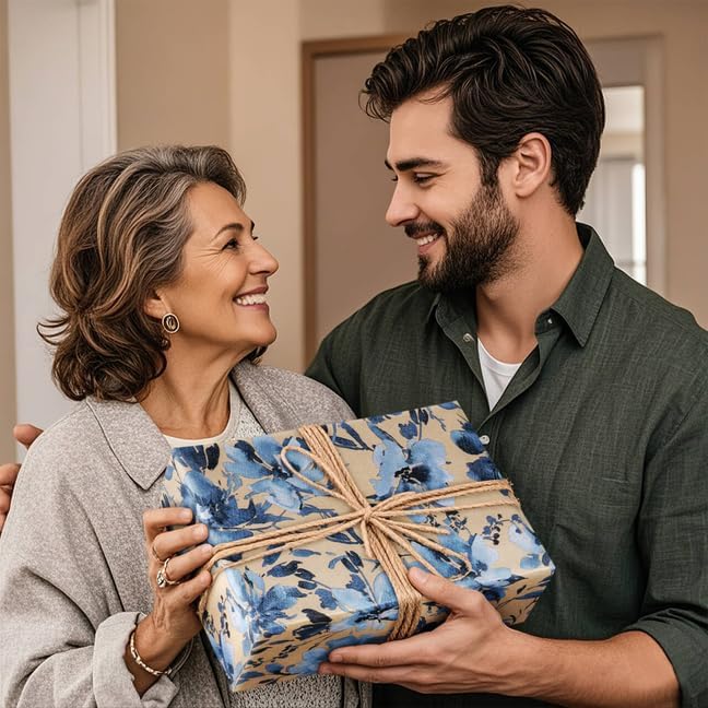 - Blue Floral Wrapping Paper Roll: Adorn your gifts with a watercolor blue flower print that exudes charm and elegance. The blue flower wrapping paper make it ideal for creating a wonderful gift presentation that leaves a lasting impression