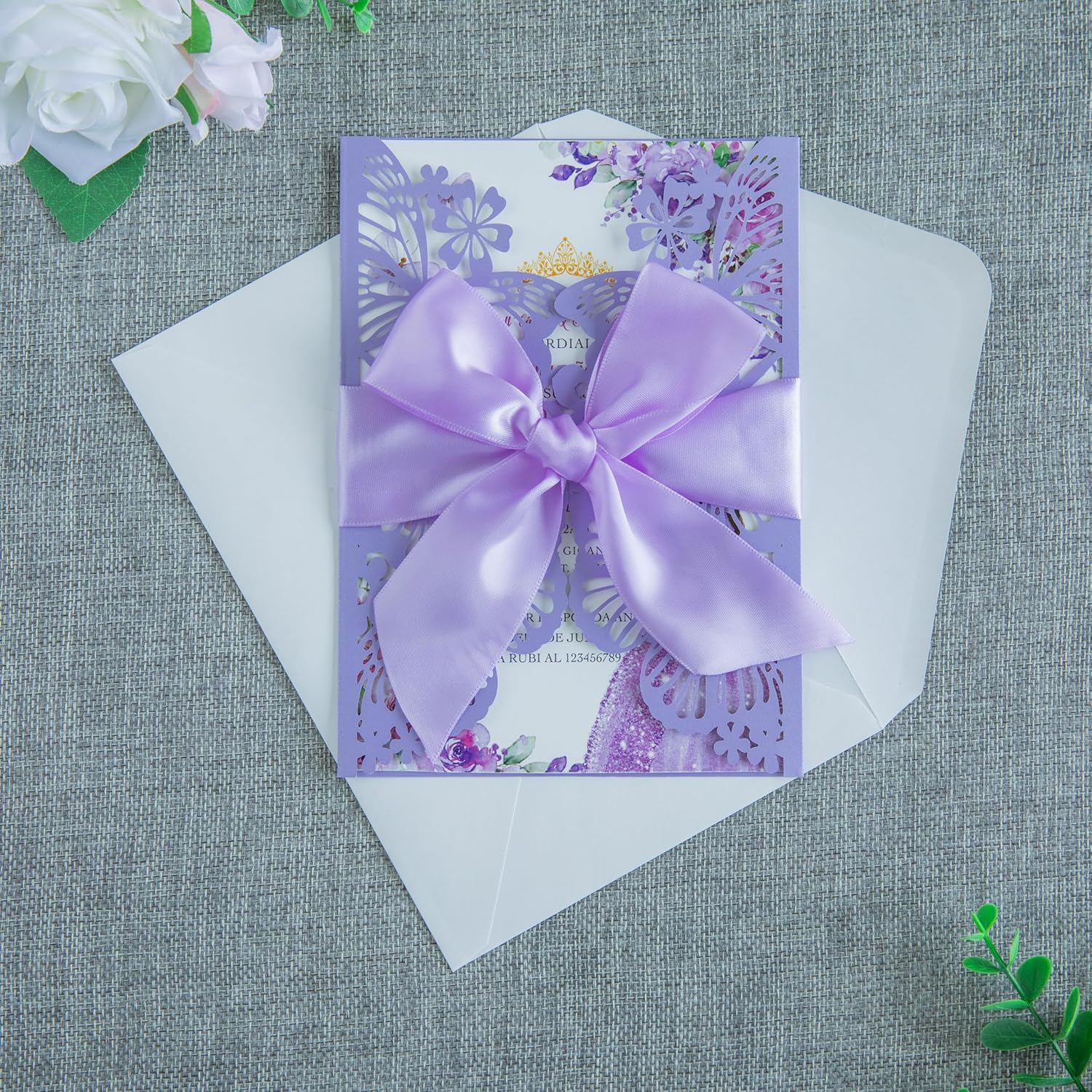 - Package include: 20 x envelopes, 20 x laser cut invitation cards, 20 x customized sheets, 20 x ribbons