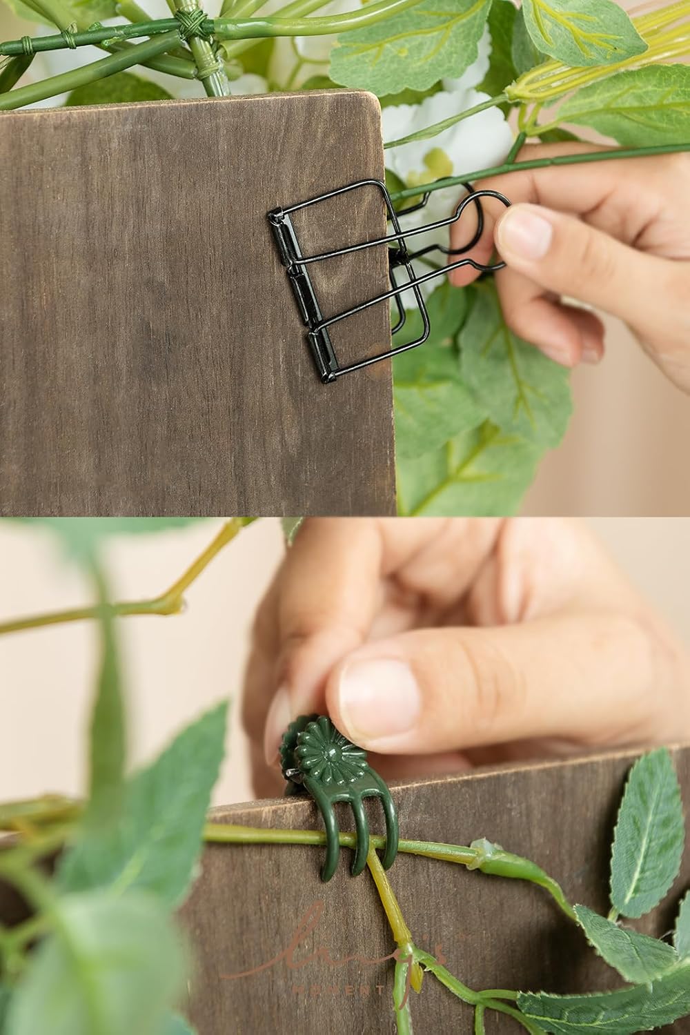 - EASY TO USE: Fasten the wedding seating chart swag to the edge of the easel stand for sign with clips, which won't damage fabrics and flowers and is easy to remove off. Comes with four small claw clips that can be used to clamp the leaf vine branches on the stand, like a vine growing on an easel.