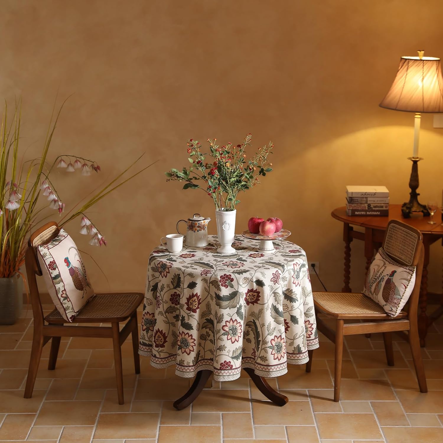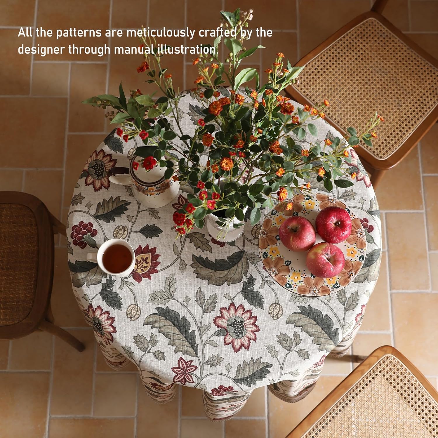 ISAENNE Designer Provence Floral Small Round Tablecloth,Linen Colorful Washable Indoor Table Cloth,Durable Home Decor Tablecloths for Dining Thanksgiving Kitchen Christmas,Diameter 55"-Ratina