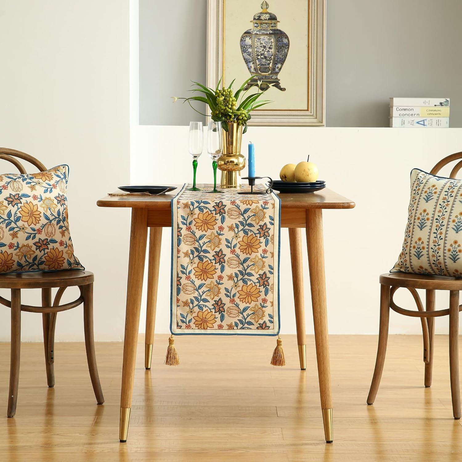 - Unique Design:Each table runner features patterns hand-drawn by our designers,showcasing exquisite details and rich textures for stunning visual appeal.The meticulous stitching ensures a smooth,wrinkle-resistant,and durable finish.With its fresh,rustic yet elegant style,it adds vibrancy and charm to your home decor