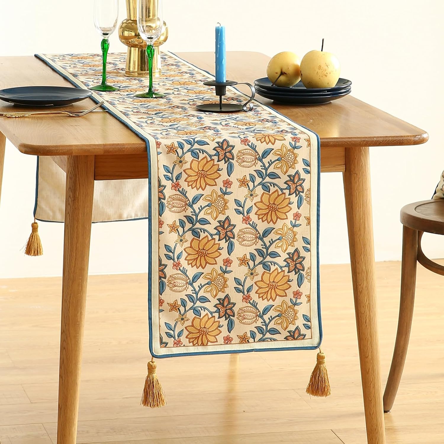 ISAENNE Designer Bohemian Elegant Linen Table Runner 102 Inches Long,Floral Pattern Duable Decor Table Runners for Dining Tables,Thanksgiving,Kitchen Tables,Christmas,12"*102"-Estevan B