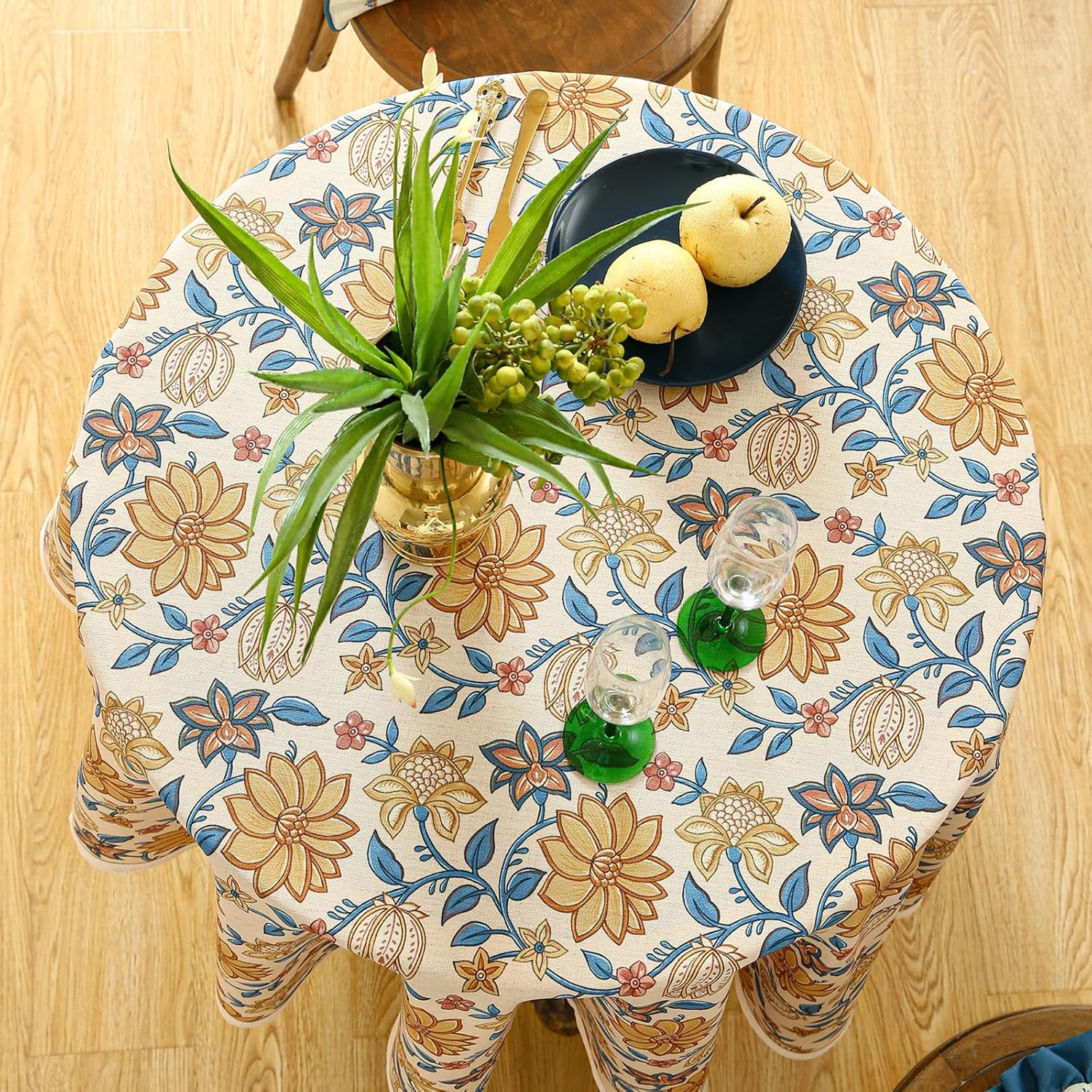 ISAENNE Designer Bohemian Floral Round Tablecloth,Linen Colorful Table Cloth,Wrinkle Resistant Decor Tablecloths for Dining Thanksgiving Kitchen Party Christmas,Diameter 67"-Estevan B