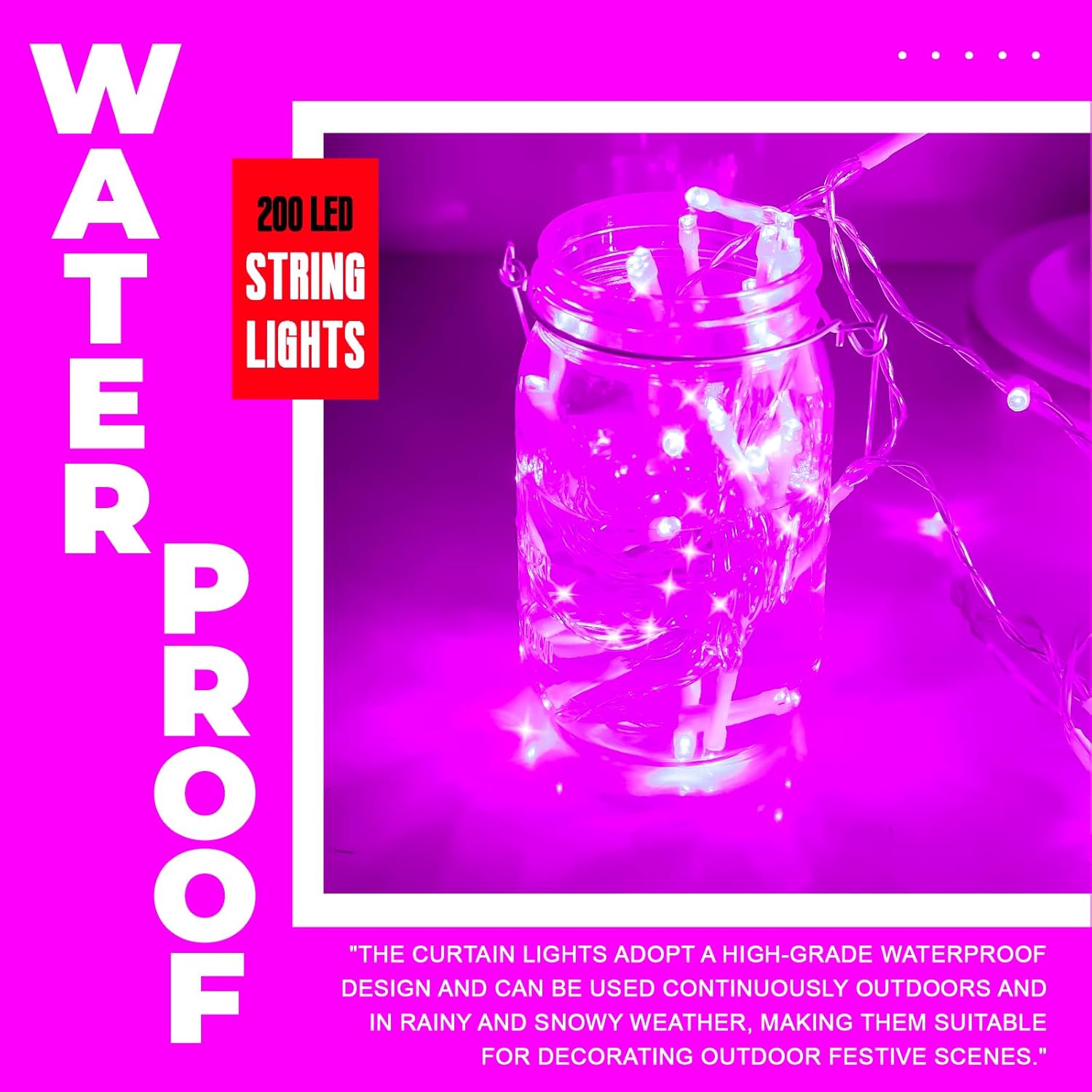 - Tangle-Free Curtain Lights: 200 super bright LED bulbs, the 6.6x6.6Ft curtain lights come with a 9.8Ft extension cord; With 10 drop light strings, each holding 20 LEDs, and convenient hooks at the top for easy hanging, they effortlessly add warmth and sparkle to any room, creating a dreamy, fairytale ambiance that fills your space with joy and serenity