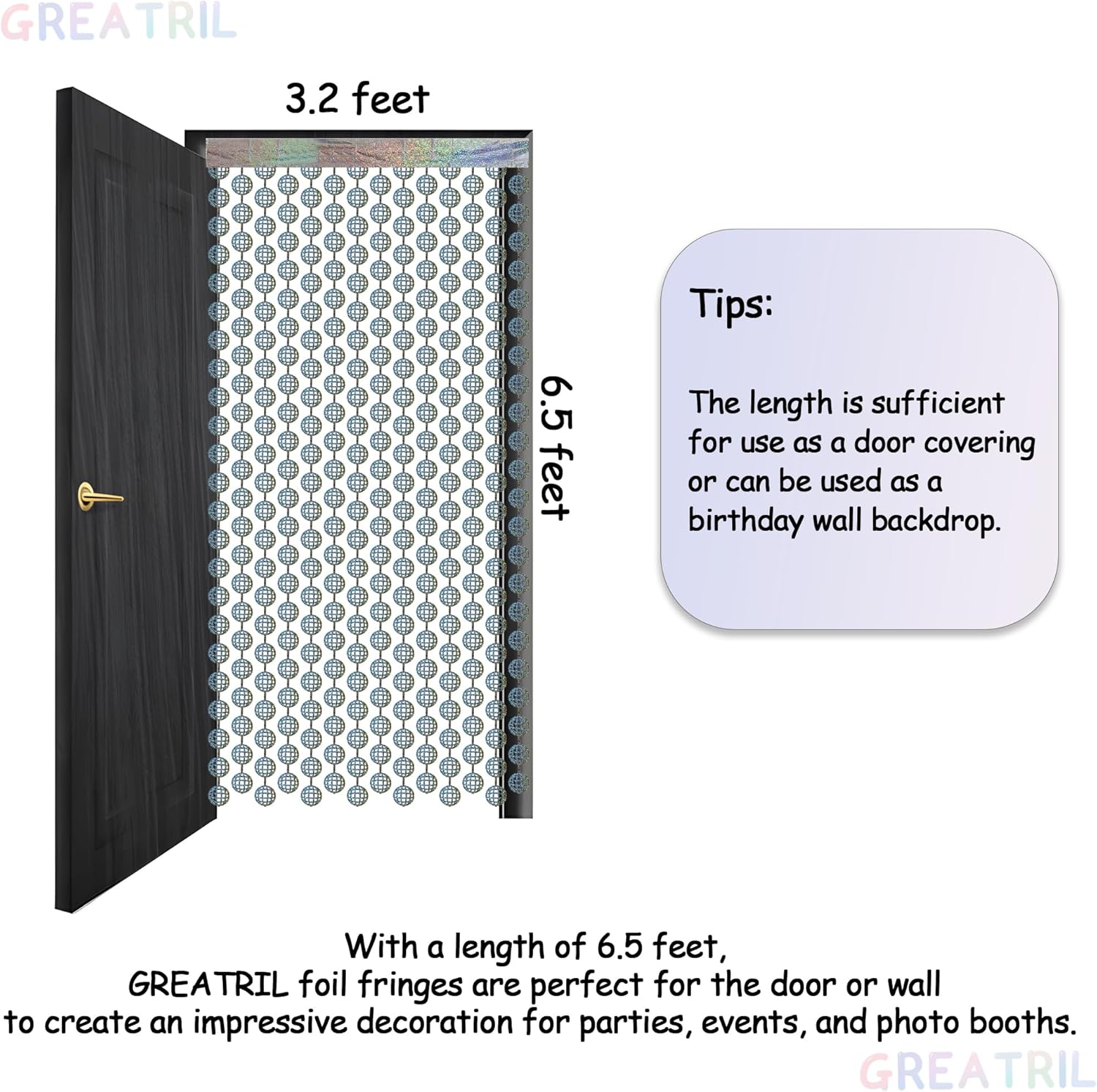 • Each backdrop measures 3.2 feet by 6.5 feet, and the set includes 2 packs. This size is ideal for decorating walls or doors, offering substantial coverage to enhance your party space with a dramatic, shimmering effect.
