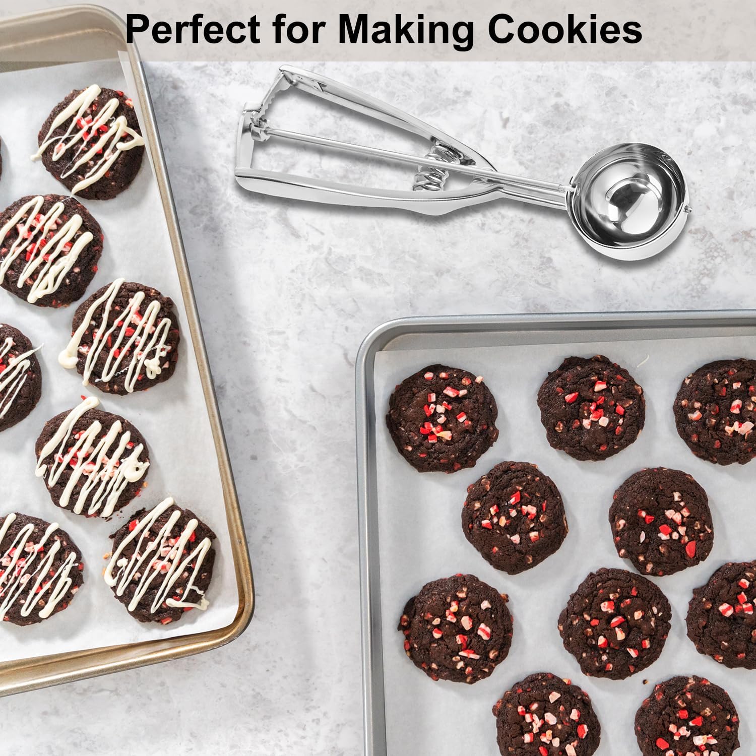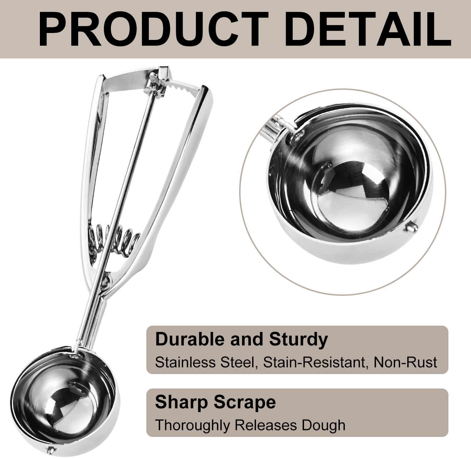 - 【High Quality, Sturdy and Durable】The cookie dough scoops for baking are made of premium stainless steel, sturdy and durable, won’t pit, rust or corrode. They are food grade, can be used with confidence, enjoy baking time.