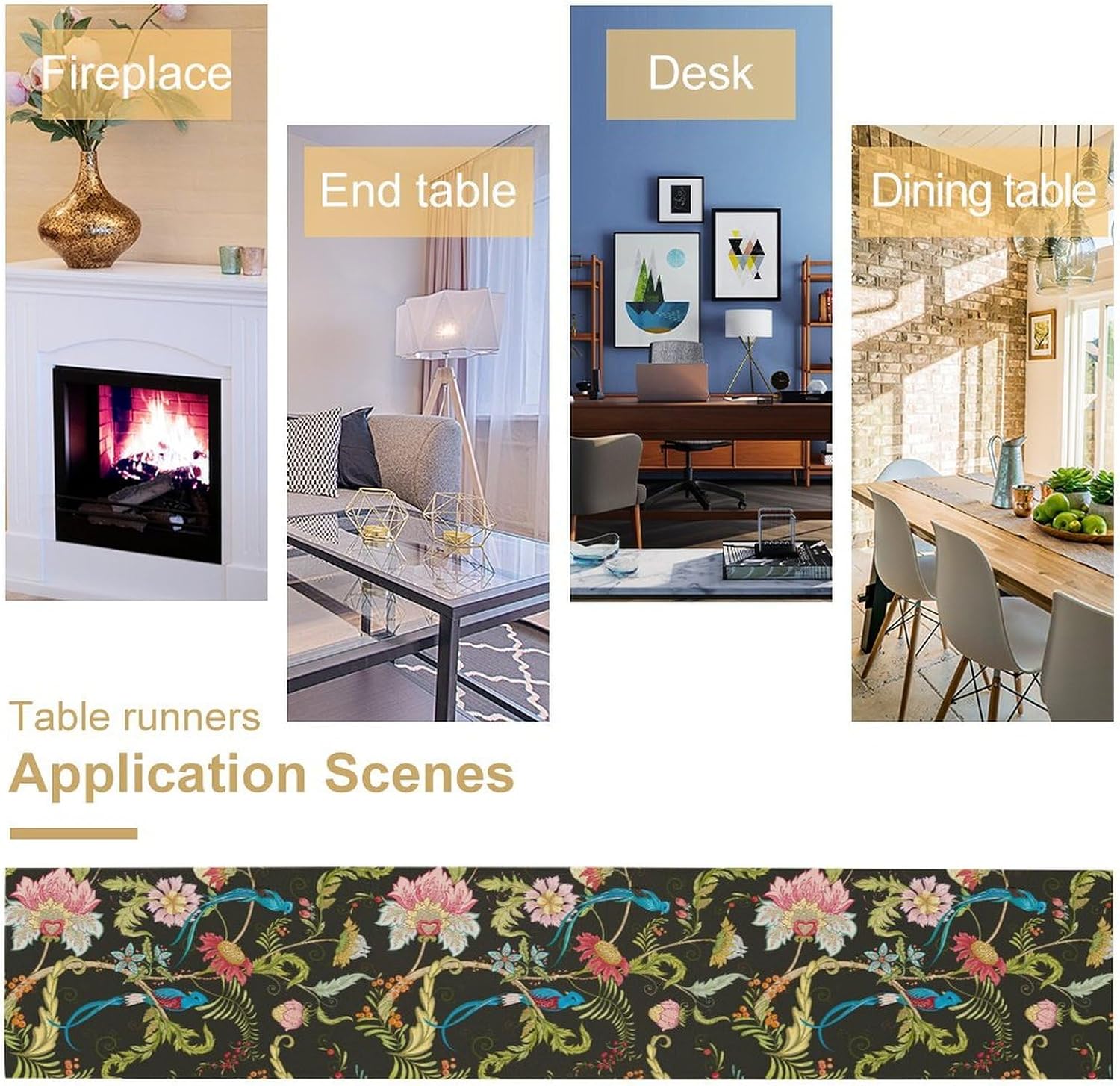 Floral Butterfly Table Runner Seasonal Spring Flower Bird Table Decoration Table Runner for Home Party Decoration 13x90 Inch