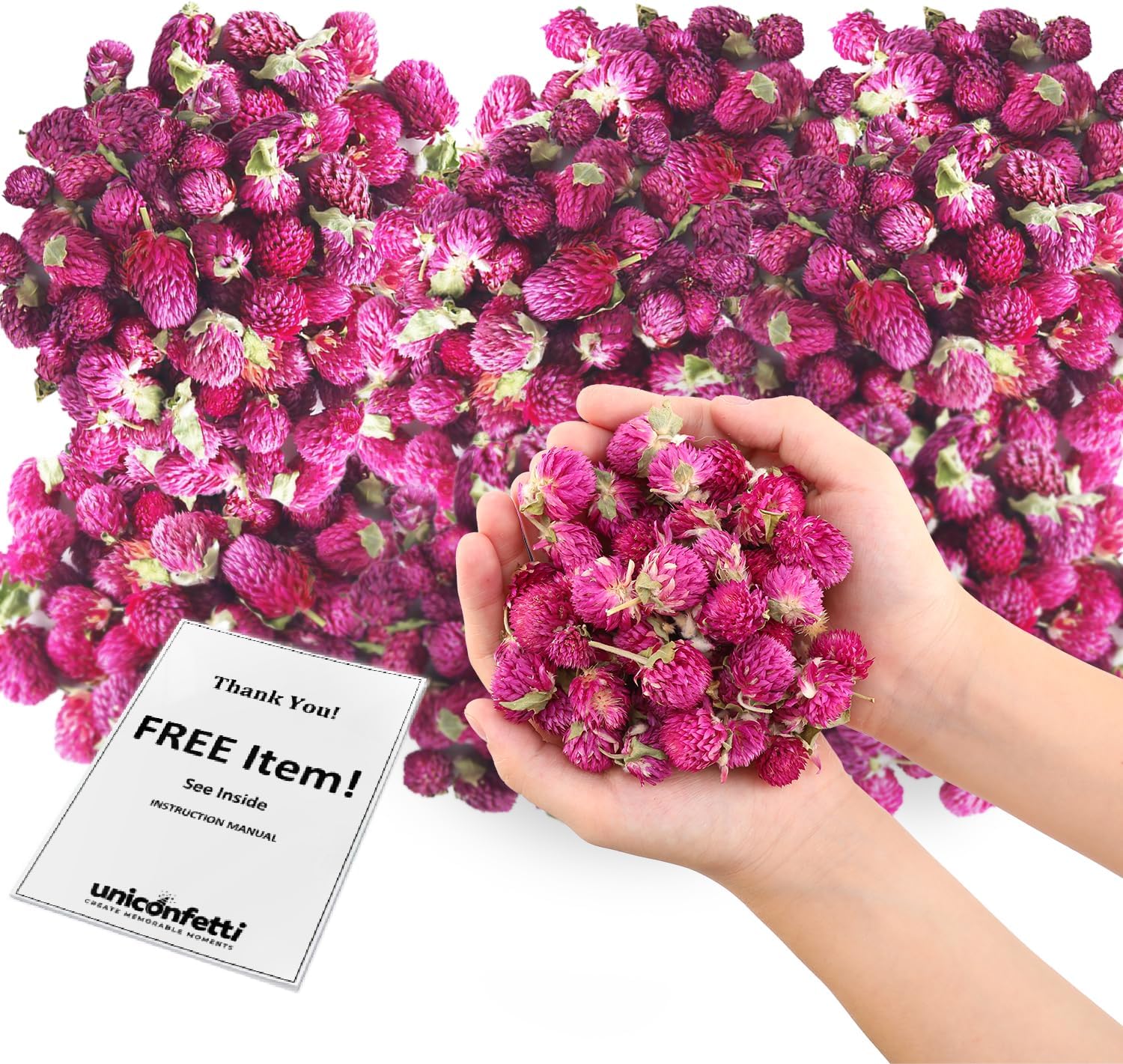 - 🎉 5-10 HANDFULS: 1/2 lbs or 8oz of oven-dried real Thousand Days Petals. The flowers were organically grown, so no chemicals and pesticides in the petals.