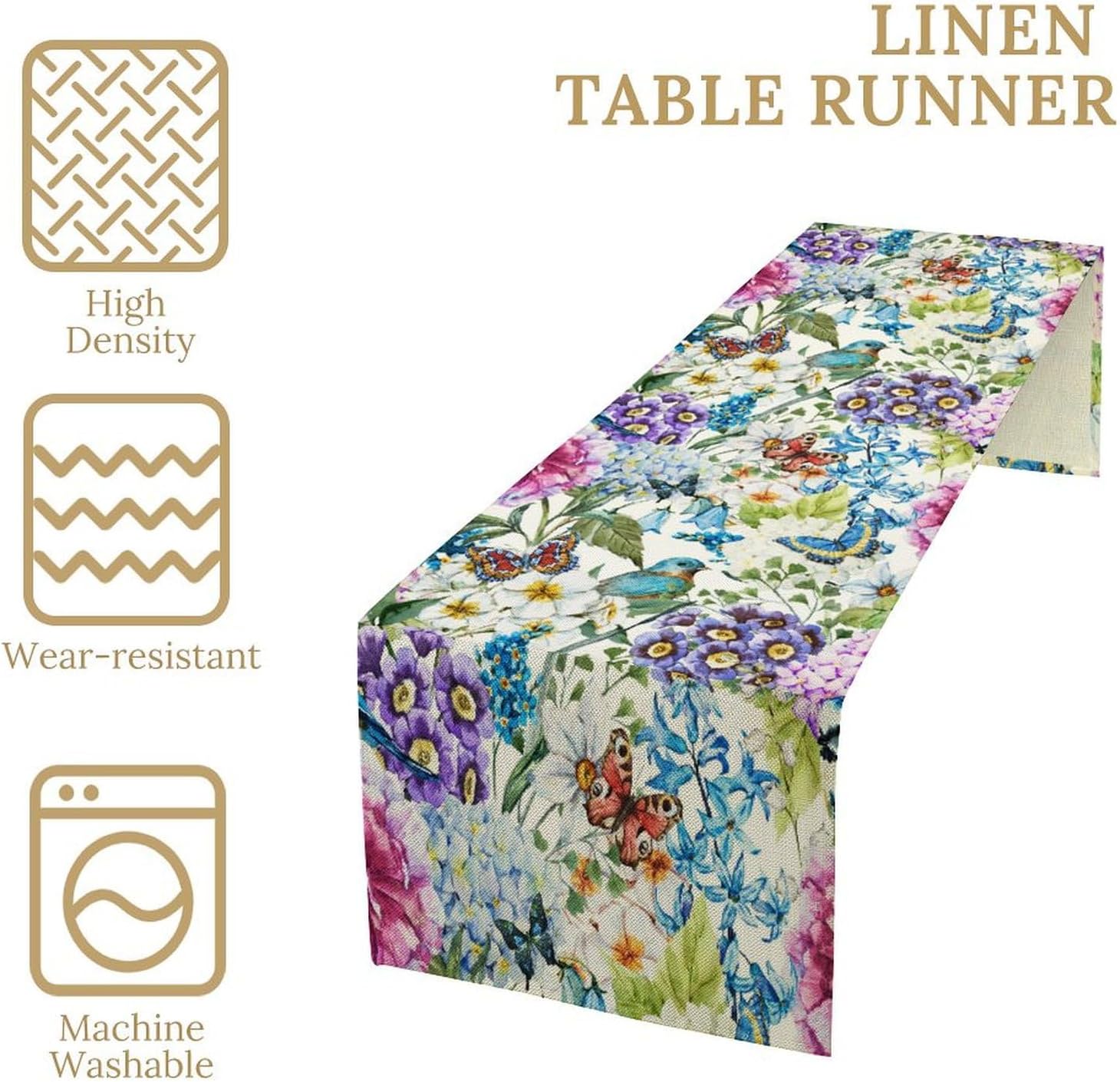 Brown Bird Floral Table Runner Spring Flower Kitchen Table Decoration Suitable for Family Dinner Decoration 13x60 Inch
