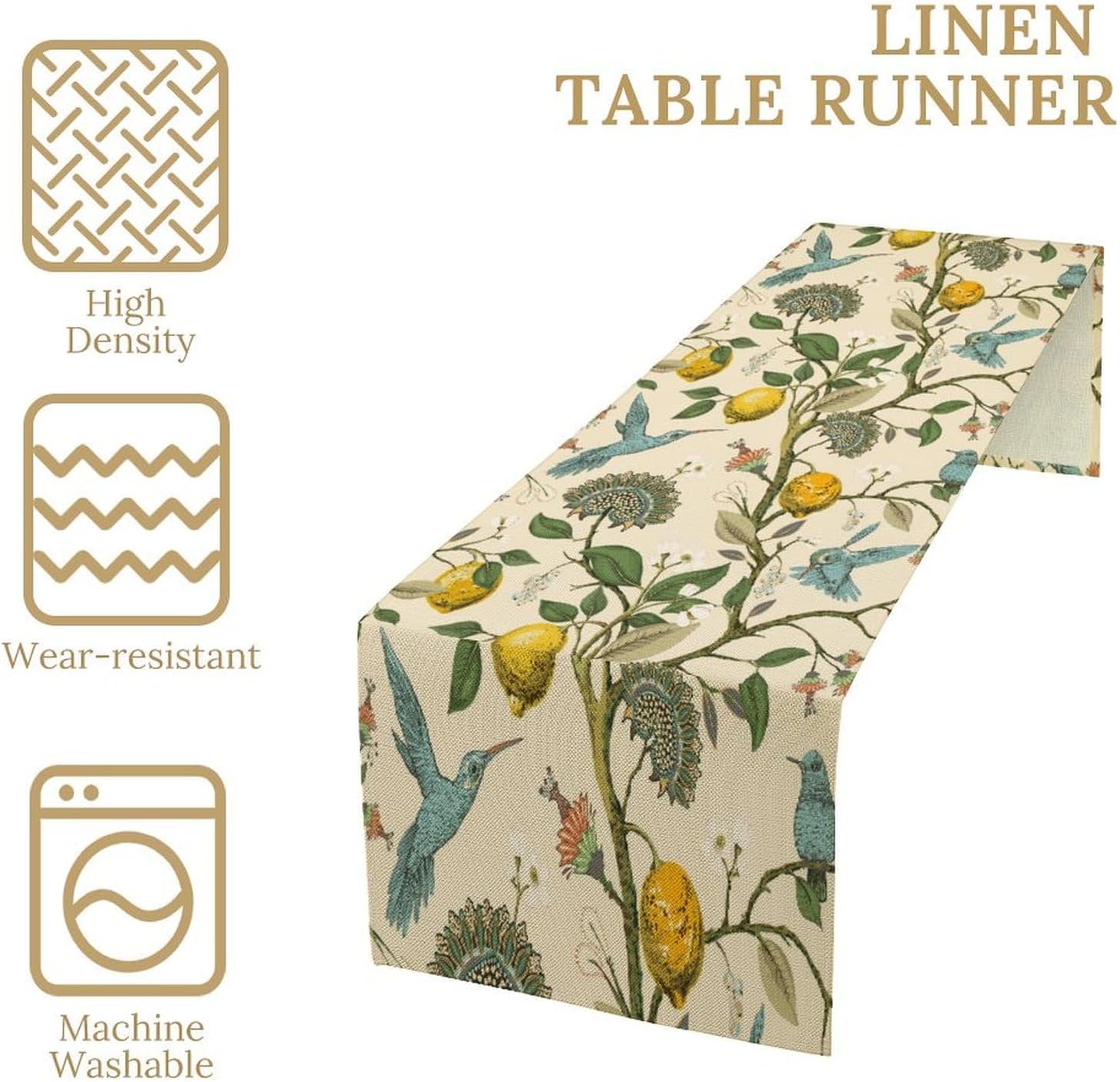 Table Runner with Flowers and Birds, Spring Plant Flowers Table Decoration Linen Table Runner Family Party Party Decorations 13x60 Inches