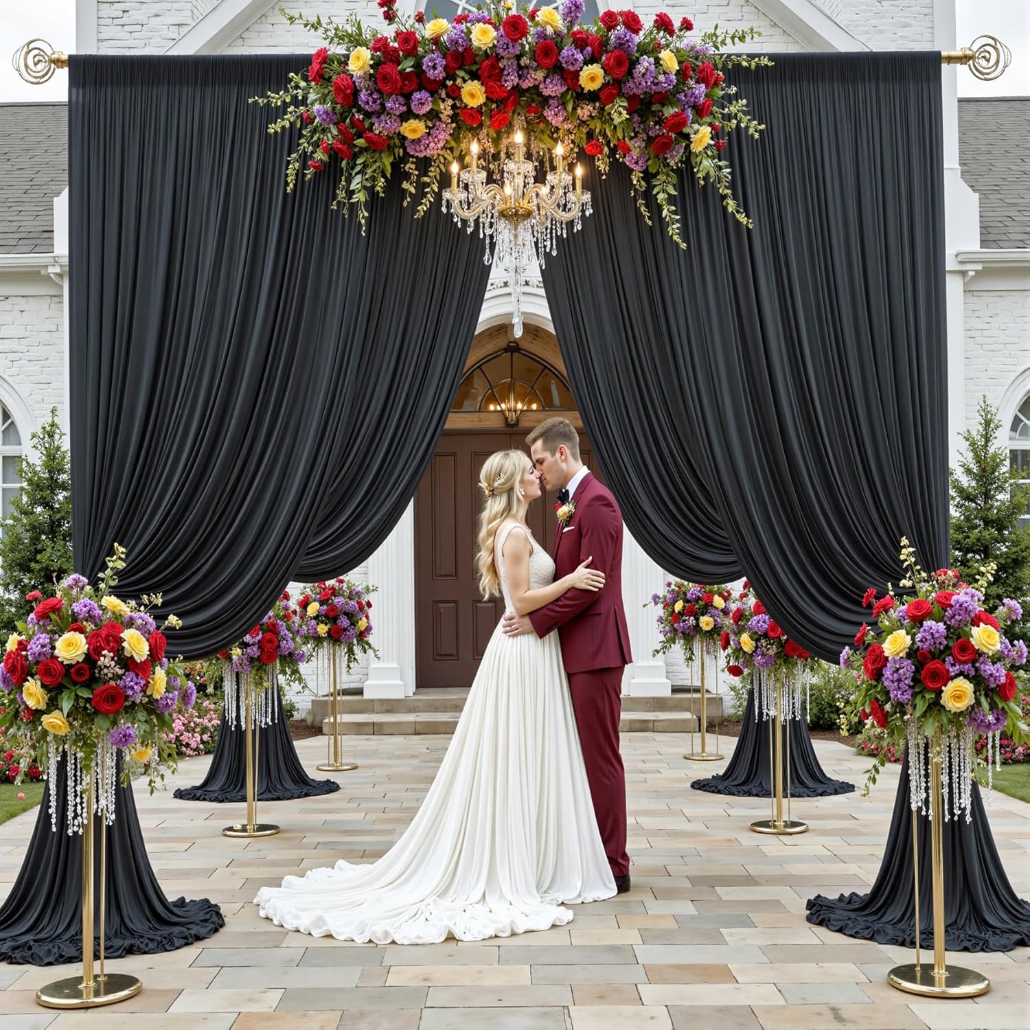 - 【Wrinkle Free, Soft, Silky and Easy to Drape Black Backdrop Curtain】- Made of high quality polyester material, wrinkle free, soft, silky, easy to drape for wedding or parties decoration, not blackout, but very thick compare with tulle or chiffon backdrop curtain.